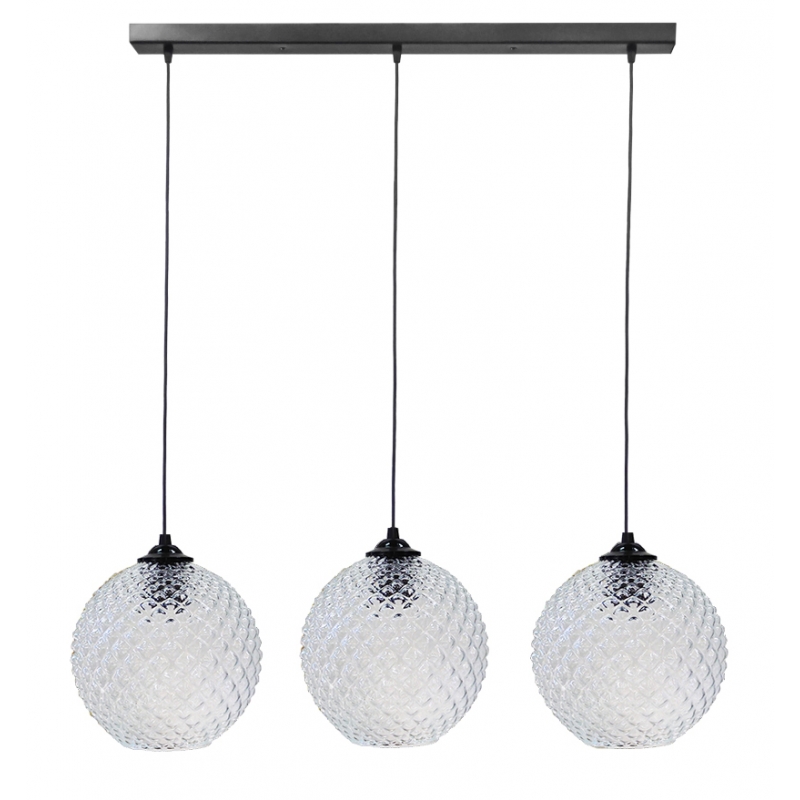 Κρεμαστό φωτιστικό 3φωτο μεταλλικό μαύρο, ράγα 5010/3 RAGA BL-TRANSPARANTE