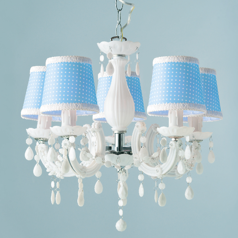 Κρεμαστό Φωτιστικό 5ΧΕ14 Λευκό Ακρυλικό Με Γαλάζια Πουά Υφασμάτινα Καπέλα Φ460 ACA – SF35045B