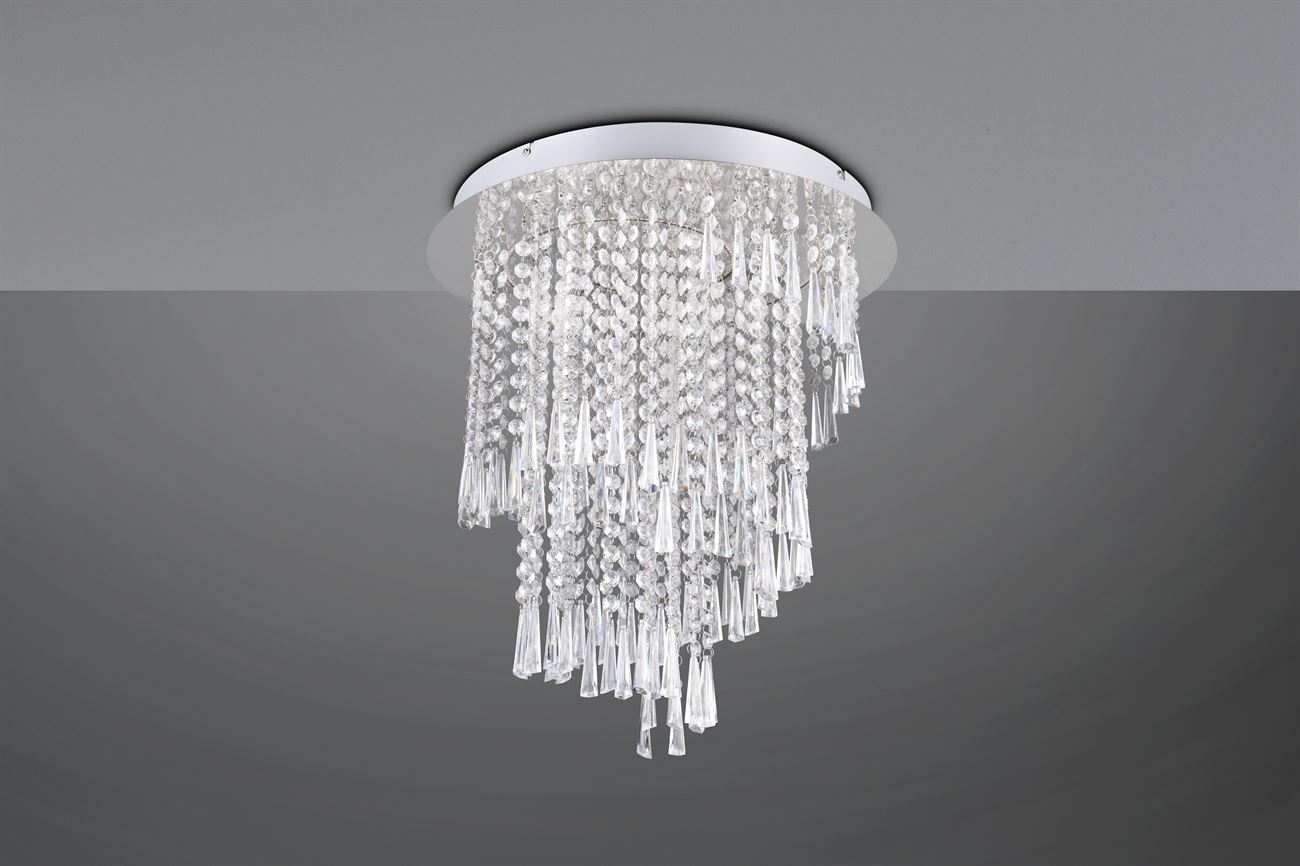 Κρεμαστό Φωτιστικό Χρώμιο & Γυαλιστερά Πλαστικά Κρύσταλλα Φ30 POMP Trio Lighting LED 30W 4000lm Dimmable με Τηλεχειριστήριο – R67349106