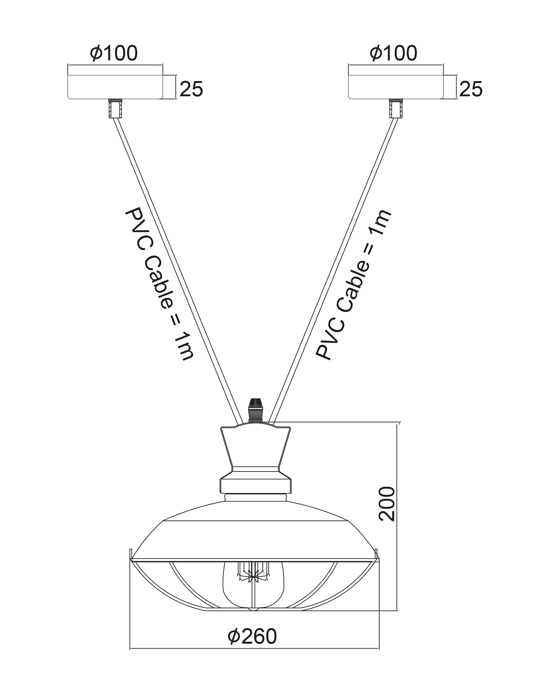 Κρεμαστό Φωτιστικό Καμπάνα Μεταλλική 1xE27 Μαύρο 2 Βάσεων Φ260 ACA – KS14632BB