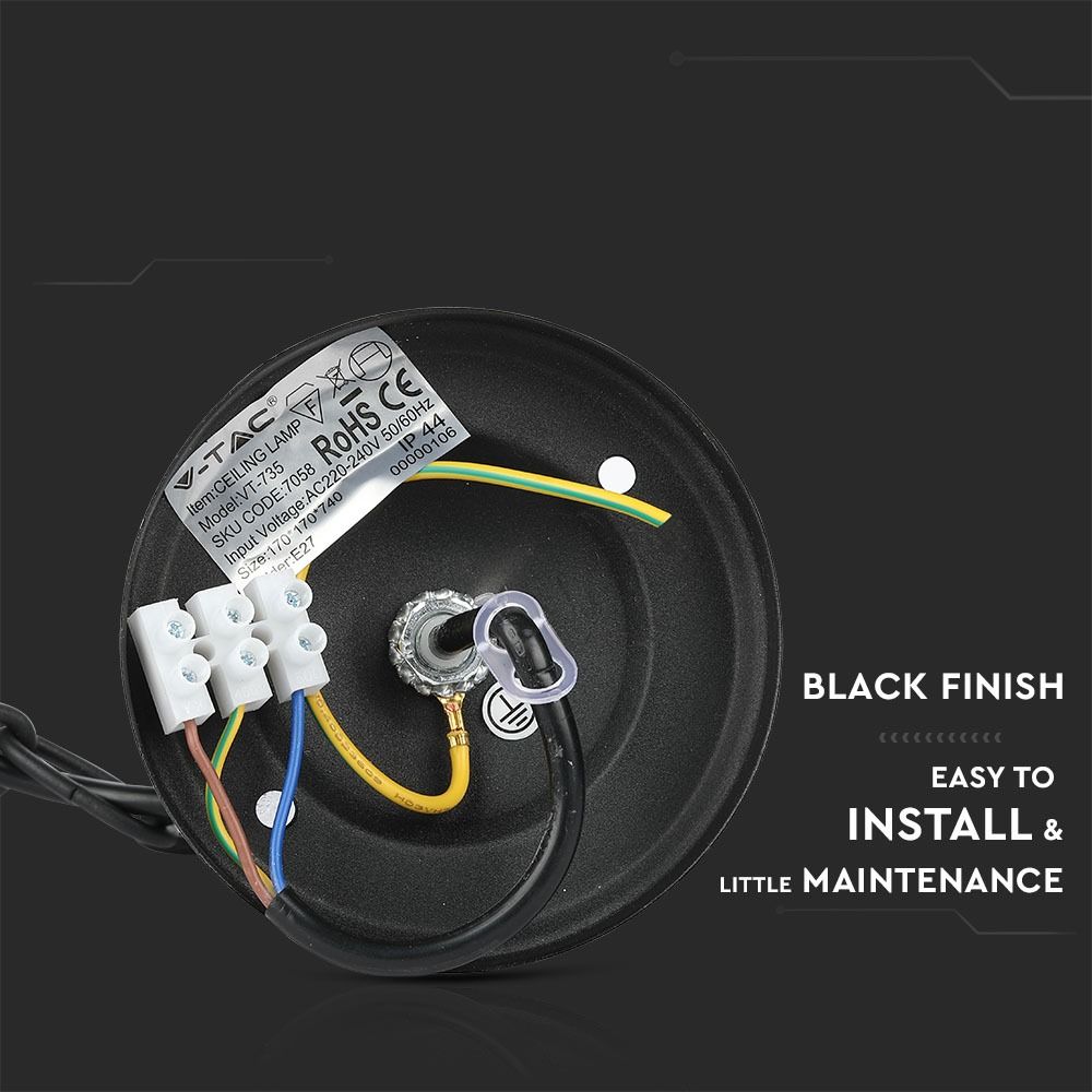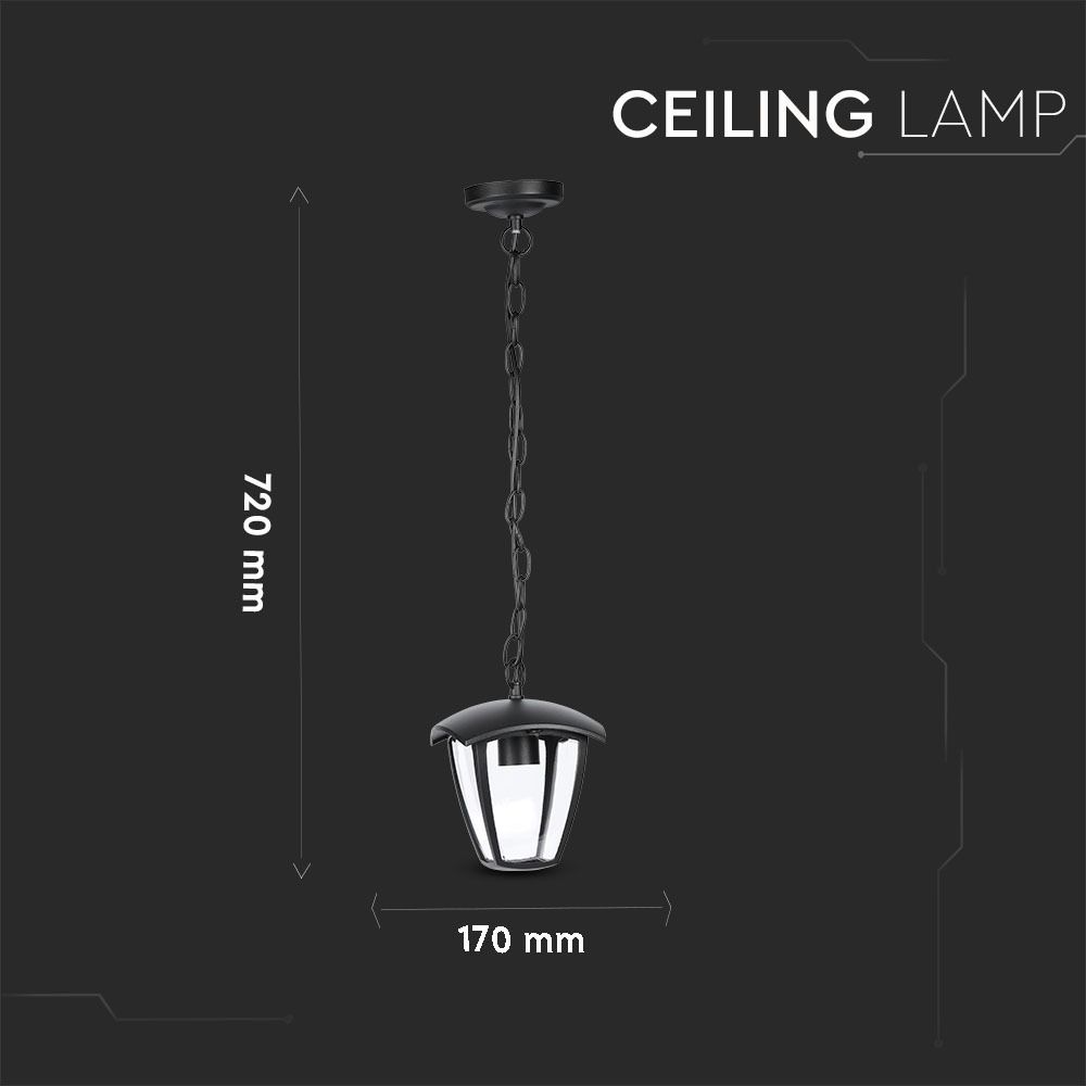 Κρεμαστό Φωτιστικό Κήπου Φαναράκι E27 IP44 Αλουμίνιο – Γυαλί Μαύρο V-TAC – 7058