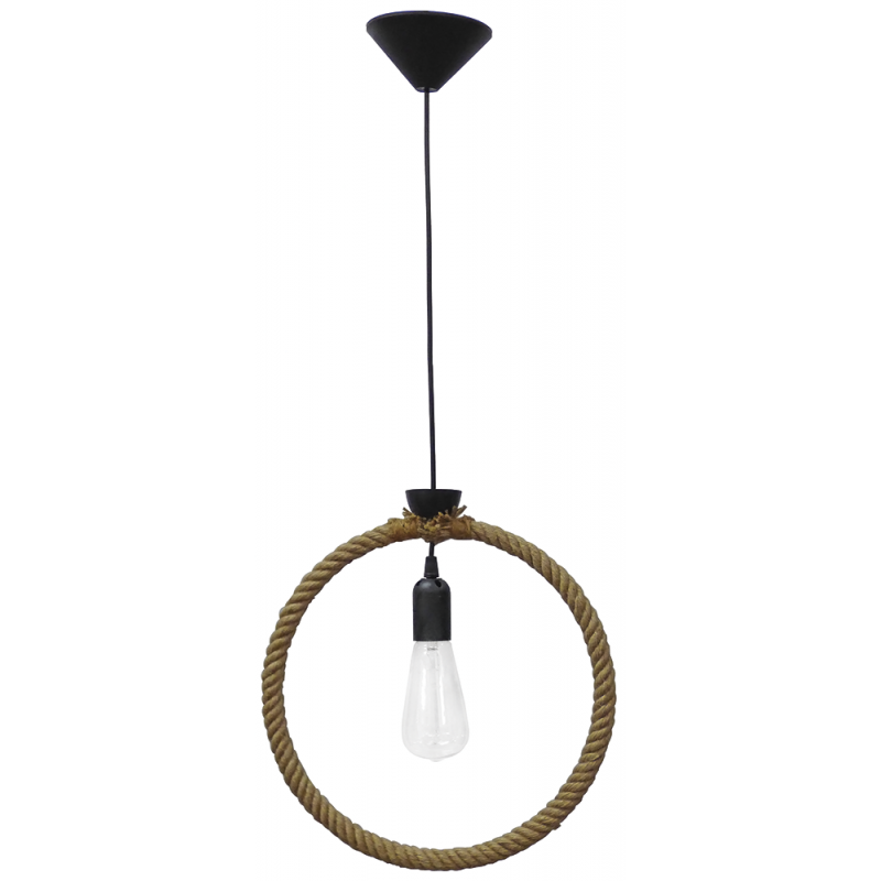 Κρεμαστό φωτιστικό μονόφωτο μεταλλικό Μαύρο με φυσικό σχοινί KYKLOS 1/L Σχοινί UT-Μαύρο
