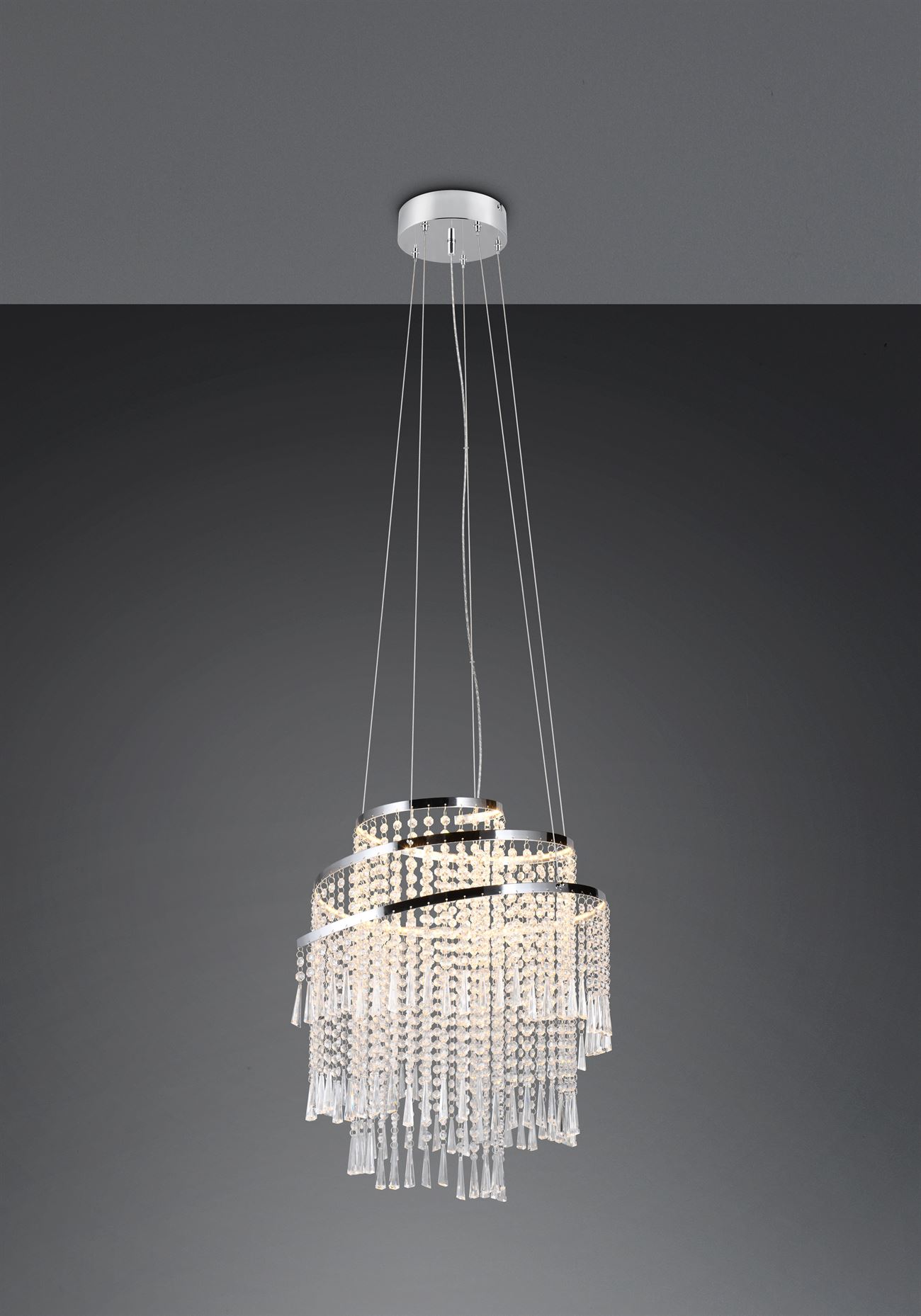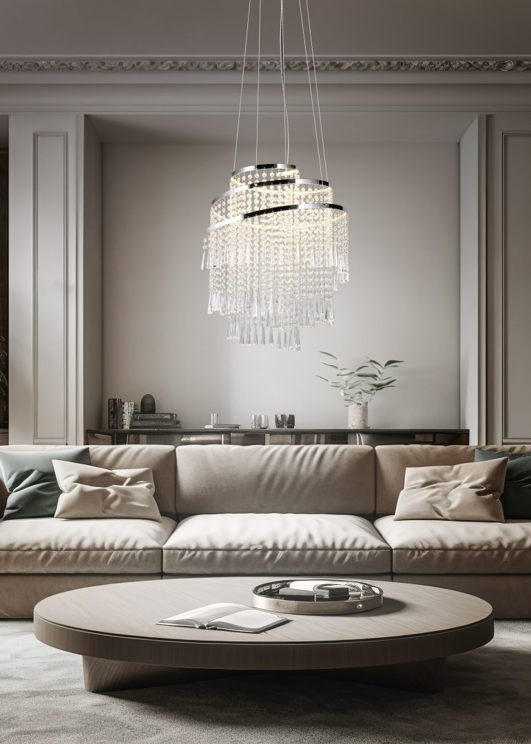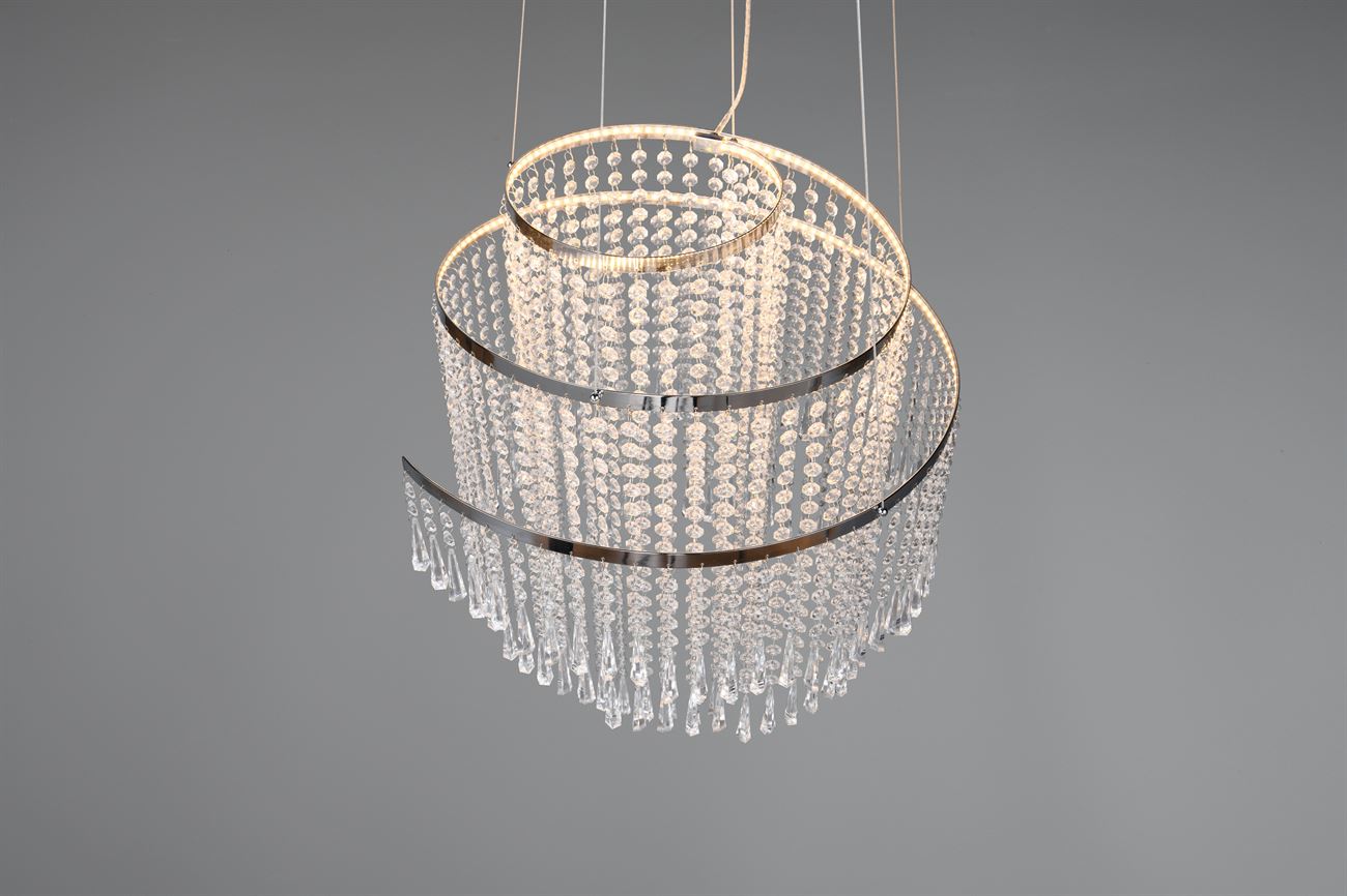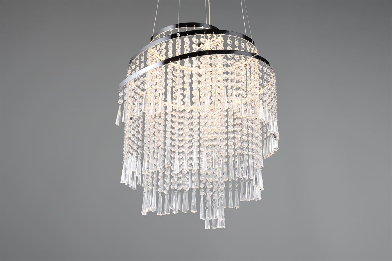 Κρεμαστό Φωτιστικό Νίκελ με Ακρυλικά Κρύσταλλα POMP Reality LED 38W 5500lm CCT Dimmable με Τηλεχειριστήριο – R37349106