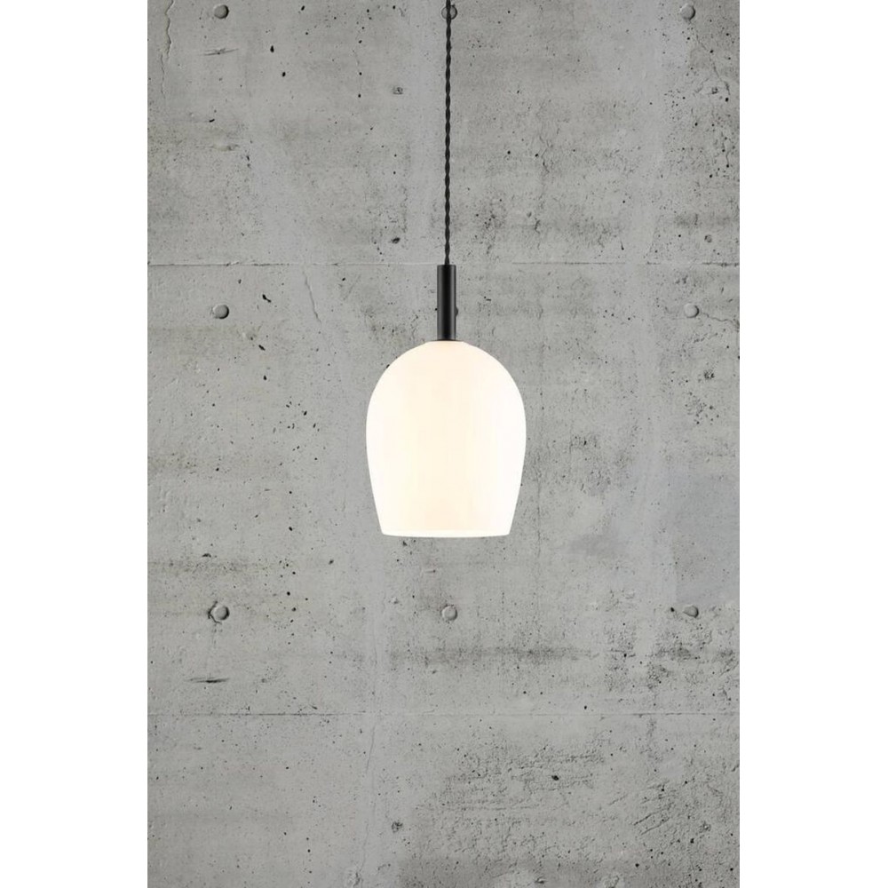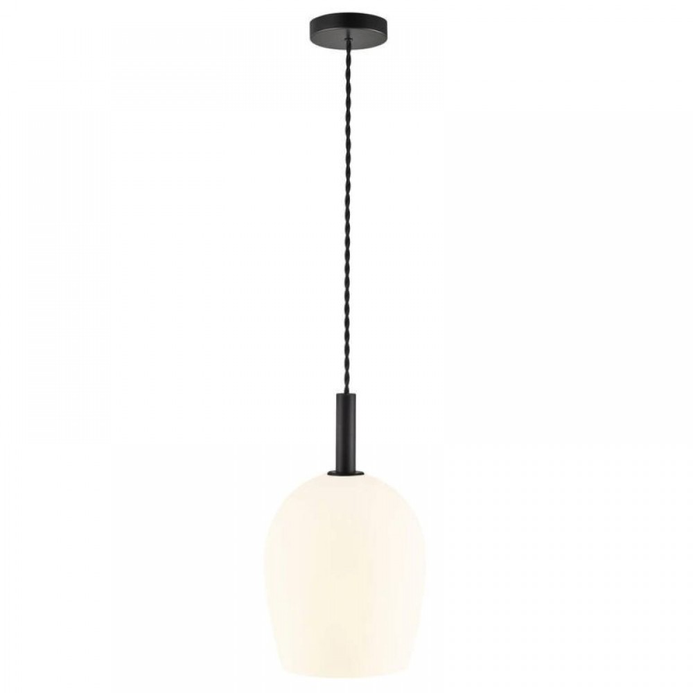 Κρεμαστό φωτιστικό οροφής μονόφωτο από λευκό οπάλ γυαλί και μέταλλο σε χρώμα μαύρο. Διαθέτει καλώδιο σε χρώμα μαύρο και μήκος 200εκ. Δέχεται ένα λαμπτήρα LED Ε27 με ισχύ έως 15W.