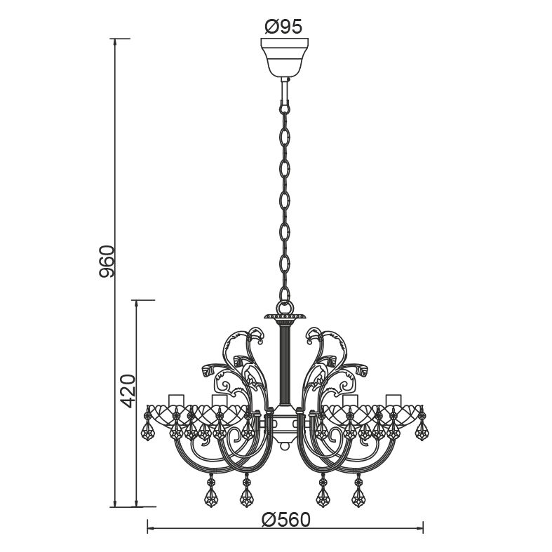 Κρεμαστό Φωτιστικό Οροφής 5xE14 Ø560 Μέταλλο-Κρύσταλλο Πράσινο Χρυσό ACA – DLA12155P