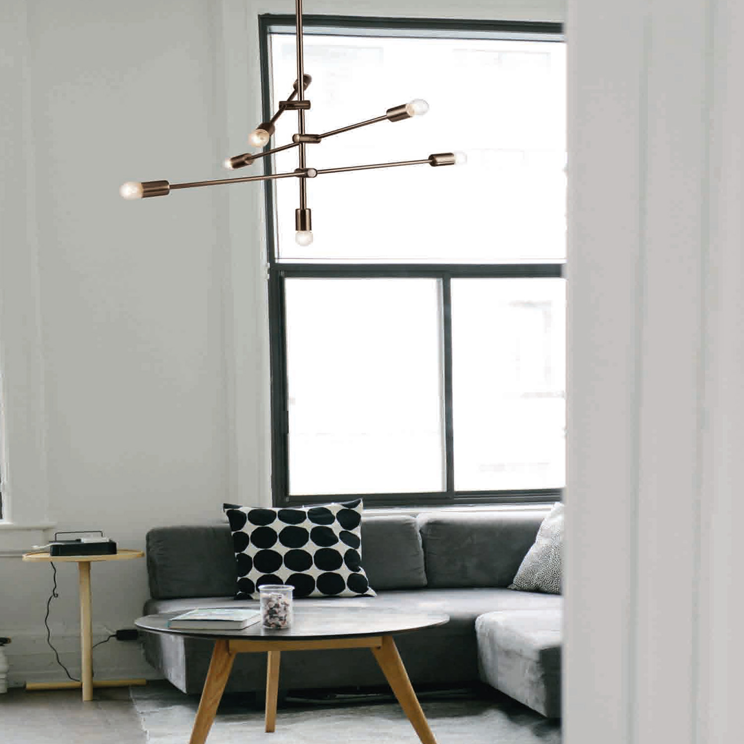 Κρεμαστό Φωτιστικό Οροφής 7xE27 με Ρυθμιζόμενους Σωλήνες Μεταλλικό Μπρονζέ ACA – OD680107BR