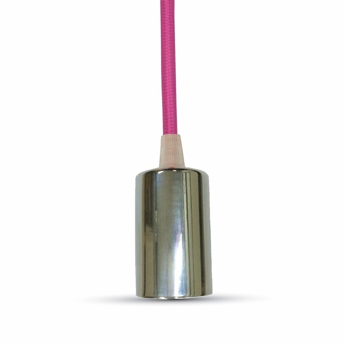 Κρεμαστό Φωτιστικό Οροφής Μεταλλικό Μονόφωτο E27 Χρώμιο με Φούξια Καλώδιο V-TAC – 3792