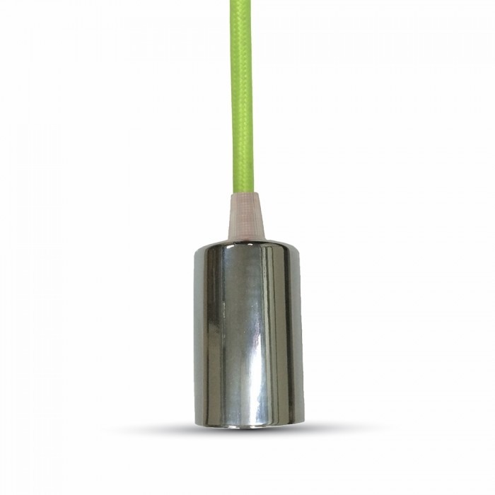 Κρεμαστό Φωτιστικό Οροφής Μεταλλικό Μονόφωτο E27 Χρώμιο με Πράσινο Καλώδιο V-TAC – 3785