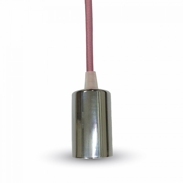 Κρεμαστό Φωτιστικό Οροφής Μεταλλικό Μονόφωτο E27 Χρώμιο με Ροζ Καλώδιο V-TAC – 3789