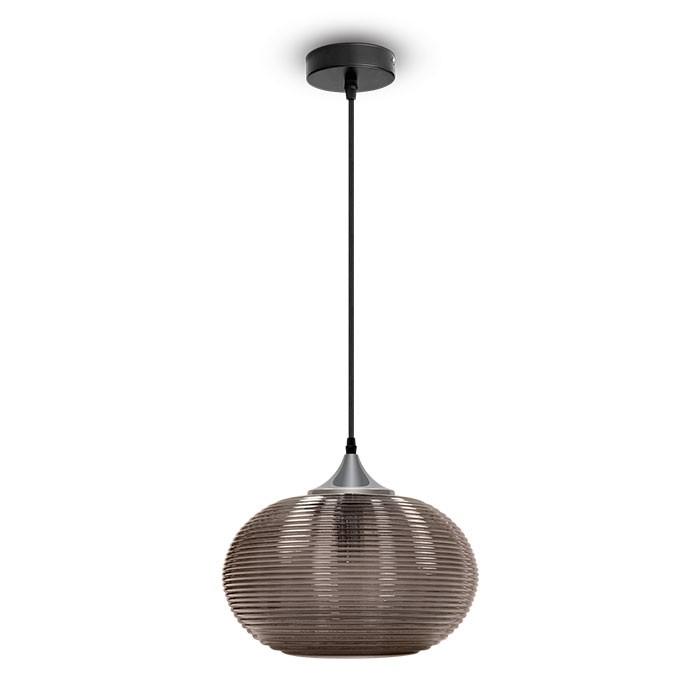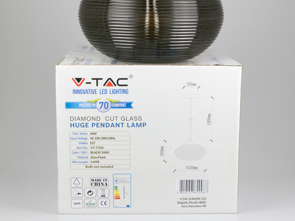 Κρεμαστό Φωτιστικό Οροφής Μονόφωτο E27 ø350 Γυαλί-Μέταλλο Μαύρο-Διάφανο V-TAC – 3880