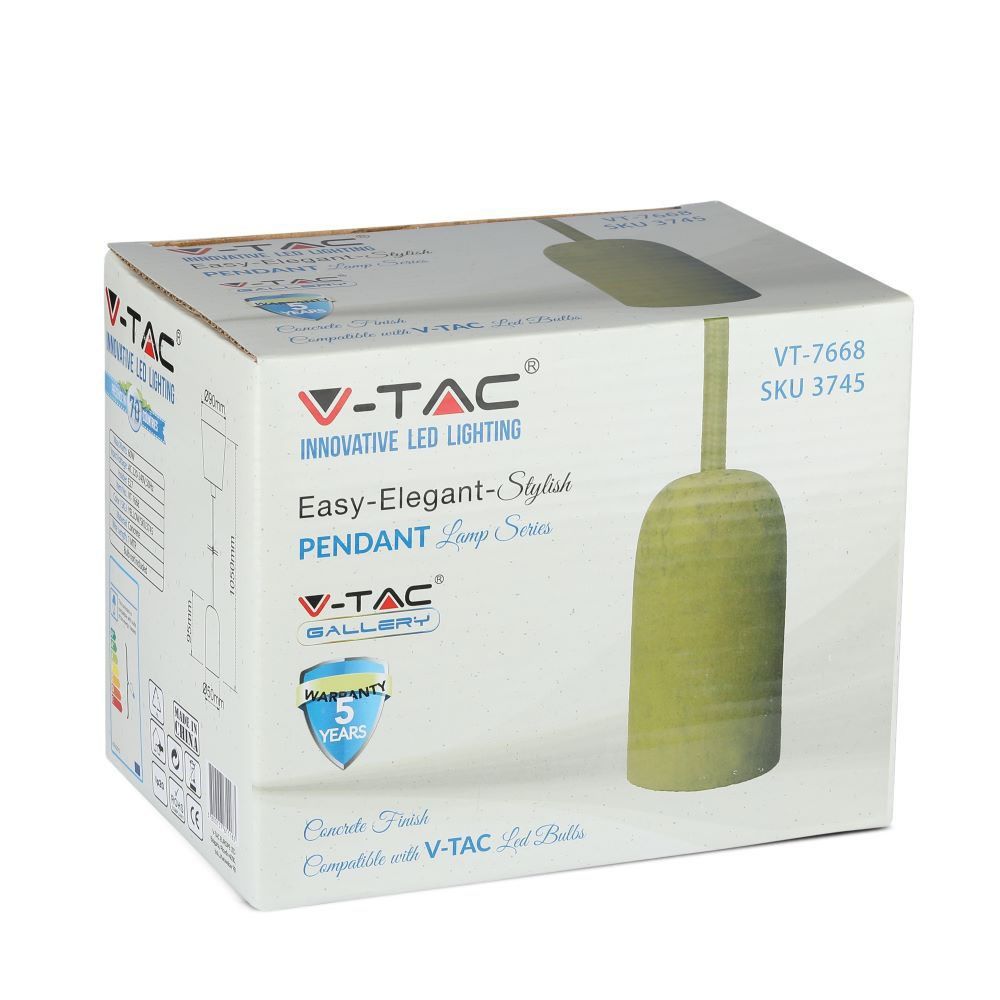 Κρεμαστό Φωτιστικό Οροφής Μονόφωτο E27 Τσιμέντο Κίτρινο V-TAC – 3745