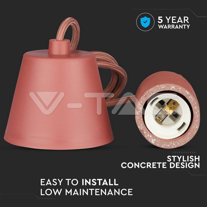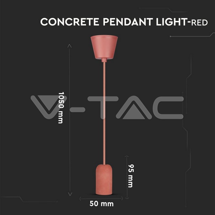 Κρεμαστό Φωτιστικό Οροφής Μονόφωτο E27 Τσιμέντο Κόκκινο V-TAC – 3743