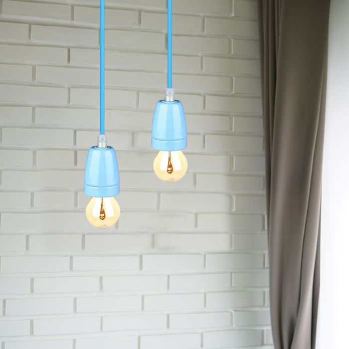 Κρεμαστό Φωτιστικό Οροφής Μονόφωτο Πορσελάνη με Γαλάζιο σώμα V-TAC 3806