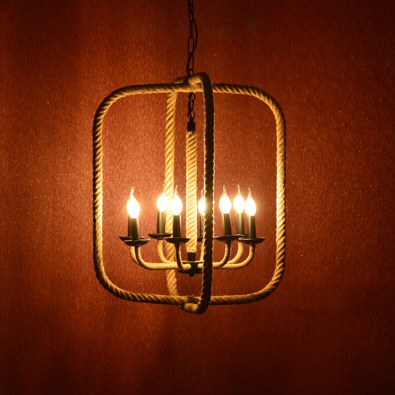 Κρεμαστό Φωτιστικό Οροφής Ορθογώνιο 8xE14 Σχοινί-Μέταλλο Καφέ-Μαύρο ACA – 563608PRT