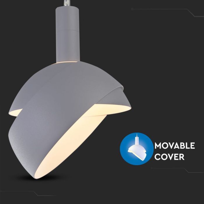 Κρεμαστό Φωτιστικό Οροφής Πλαστικό με Αλουμίνιο Κινούμενο κάλυμμα Γκρι V-TAC – 3922