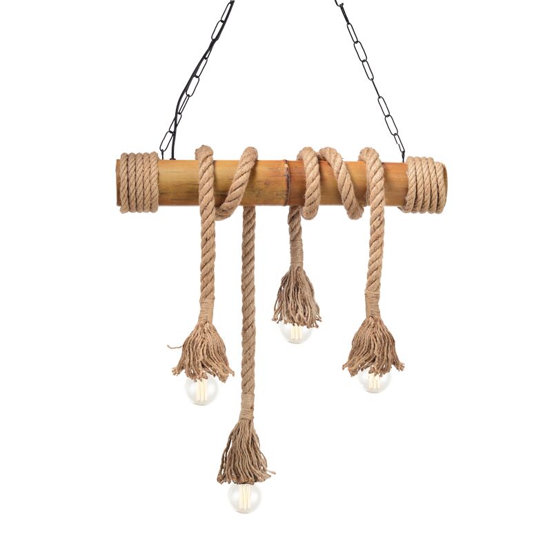 Κρεμαστό Φωτιστικό Οροφής Σχοινί 4xE27 Μέταλλο-Μπαμπού Καφέ ACA – 932604BBR