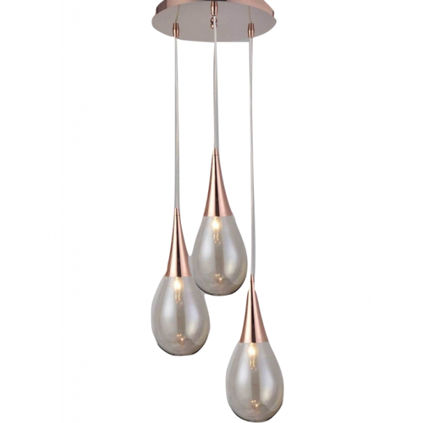 Κρεμαστό Φωτιστικό Οροφής Σταγόνα 3xE14 Ø400 Μέταλλο-Γυαλί Χάλκινο ACA – OD53423RCP