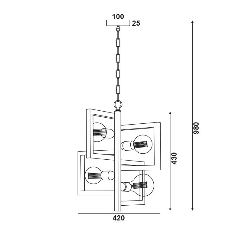 Κρεμαστό Φωτιστικό Οροφής Τετράγωνα 4xE27 Μεταλλικό Μαύρο ACA – KS14254BK