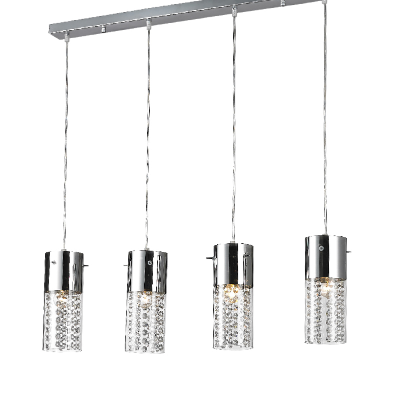 Κρεμαστό Φωτιστικό Ράγα 4ΧΕ14 Μεταλλικό Χρώμιο Διάφανο Γυαλί Βαμμένο Χρώμιο Στο Πάνω Μέρος Διακοσμημένο Με Κρύσταλλα ACA- DLA6834