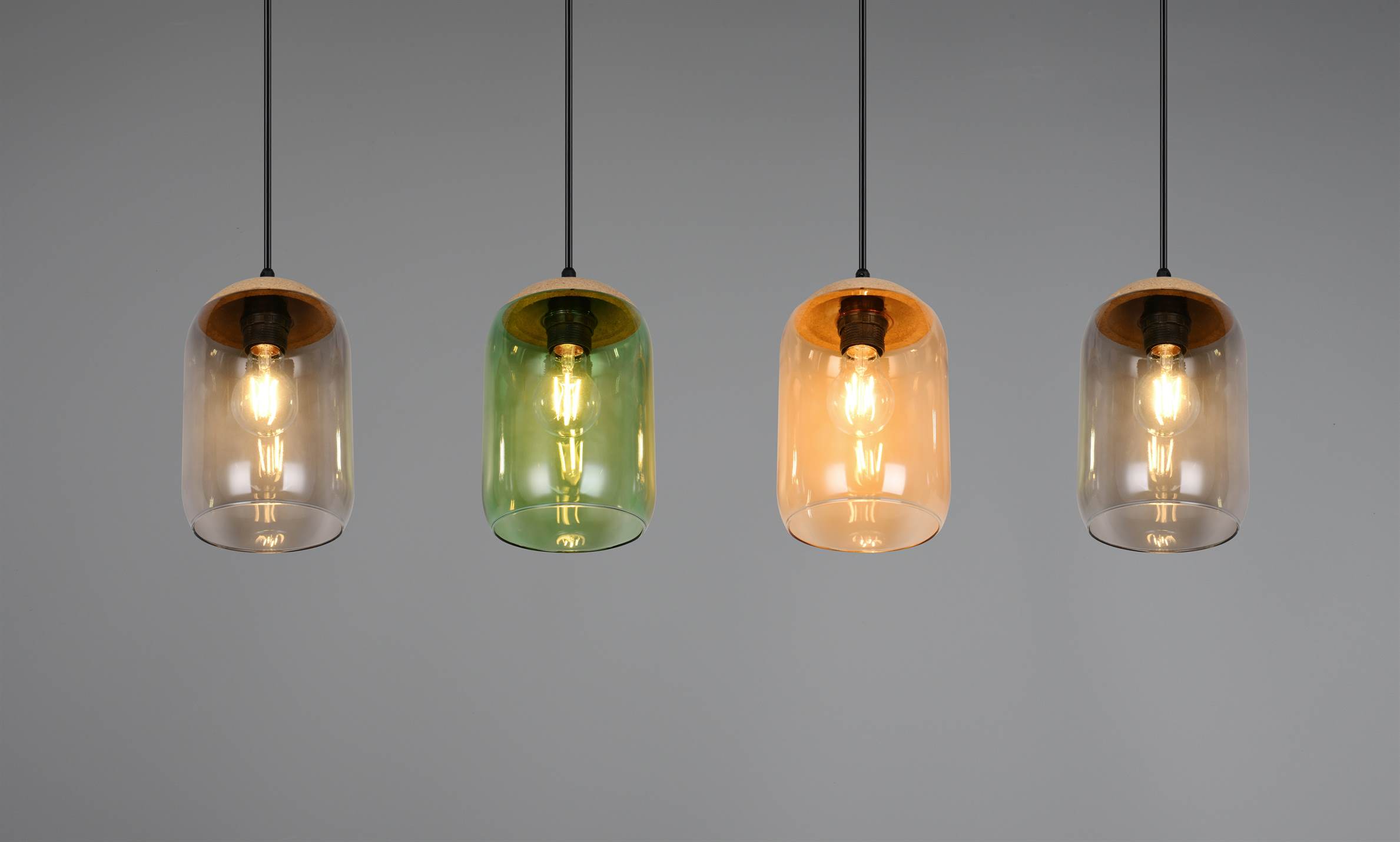Κρεμαστό Φωτιστικό Ράγα με Μελί-Πράσινο-Φιμέ Γυαλί & Φελό CORK 4x E27 Trio Lighting – 364600417