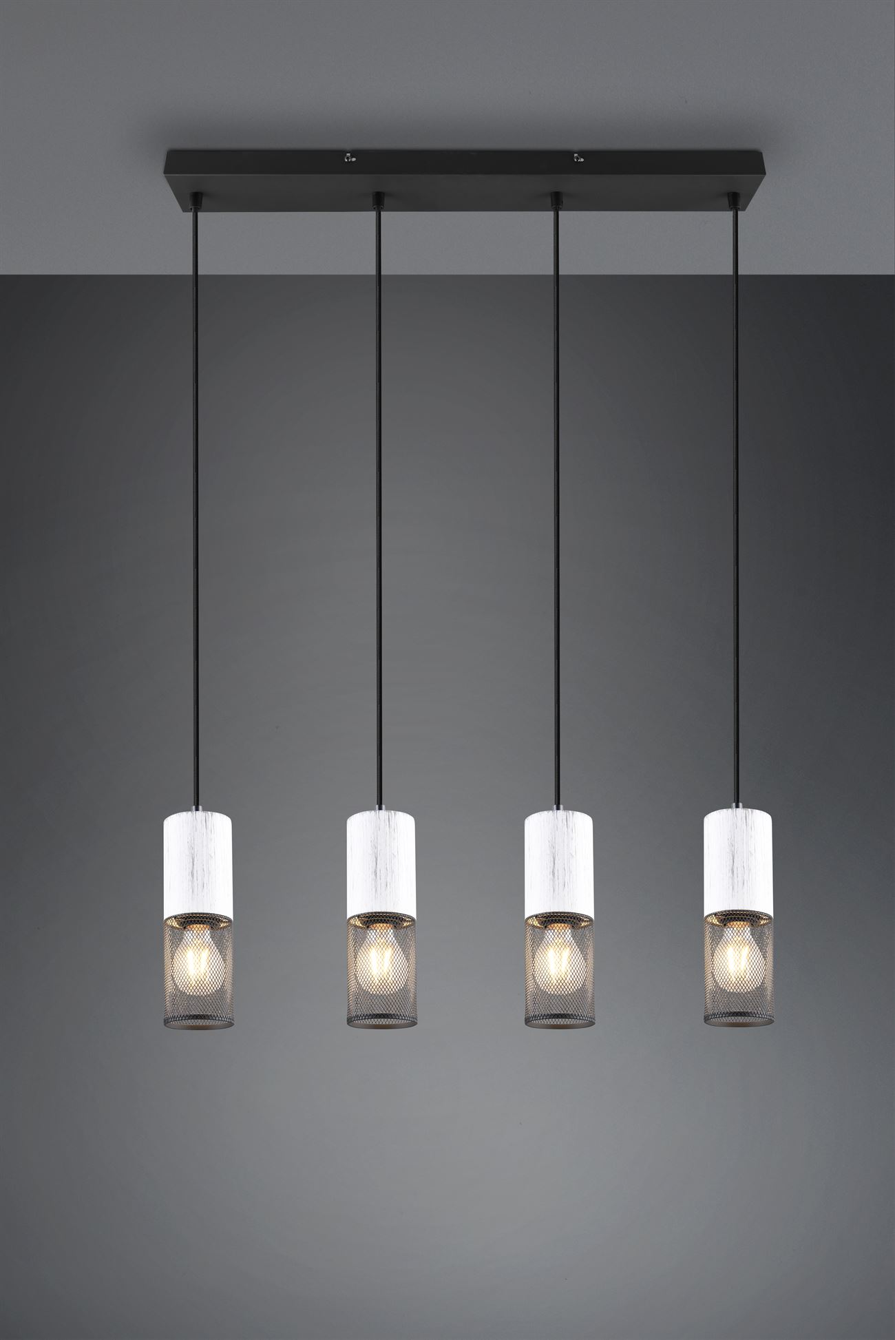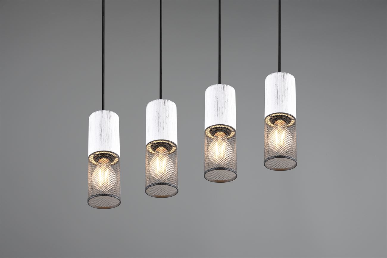 Κρεμαστό Φωτιστικό Ράγα TOSH Trio Lighting 4x E27 Μαύρο Μεταλλικό Πλέγγμα & Άσπρο Ξύλο – 304300434