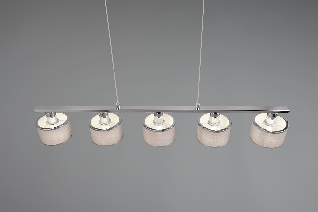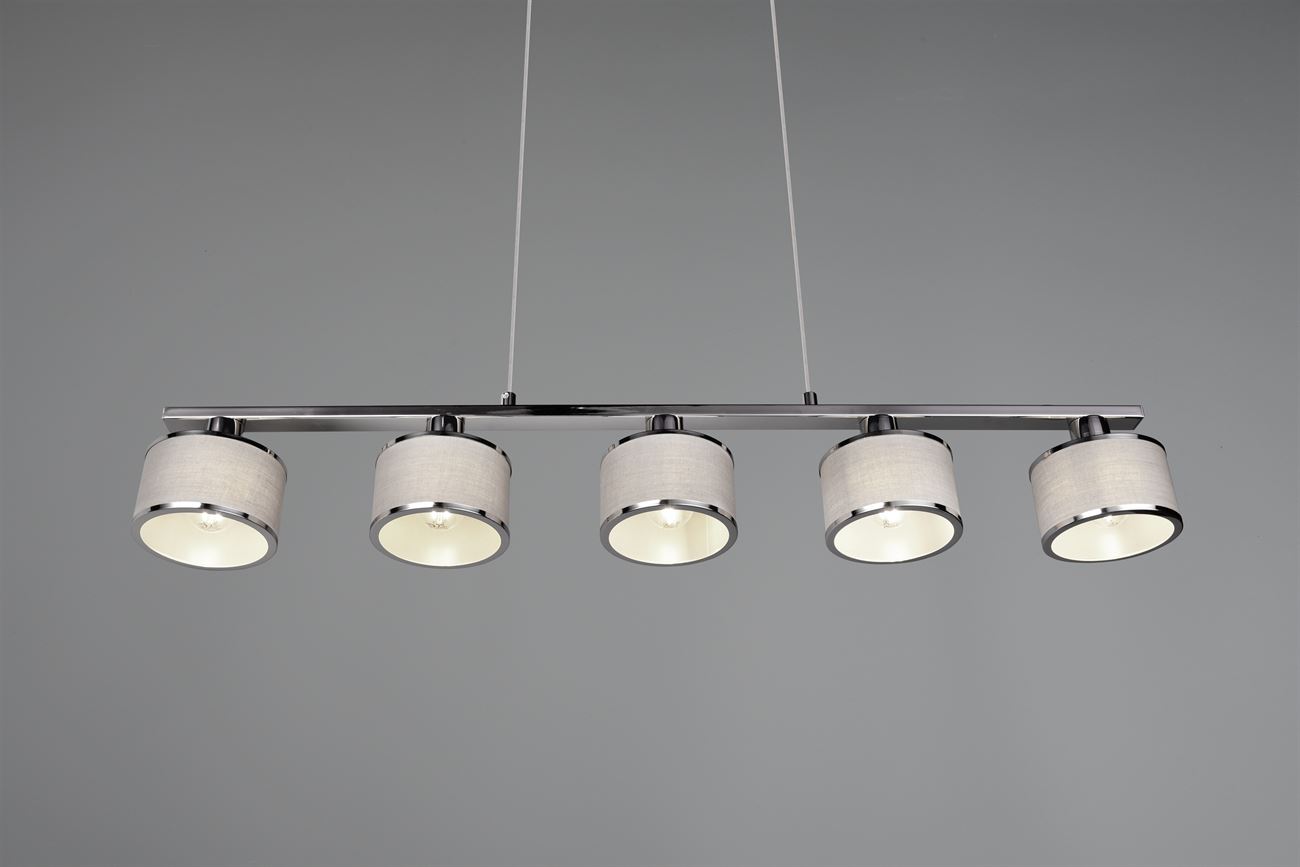 Κρεμαστό Φωτιστικό Ράγα Trio Lighting 5x E14 Χρώματος Χρώμιο με Γκρι Αμπαζουρ – 311600506