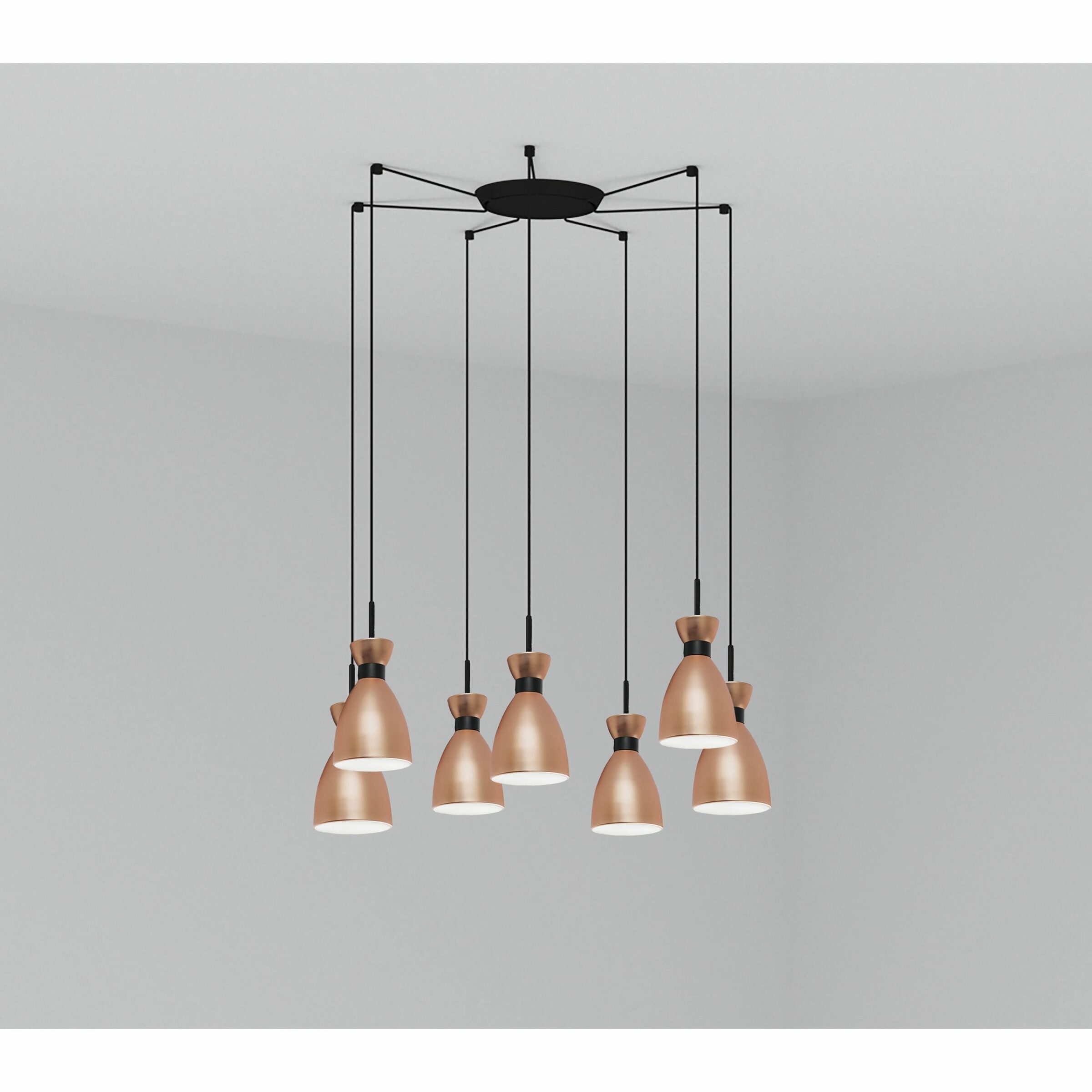 Το RETRO είναι ένα σετ λαμπτήρων σχεδιαστών των Alex & Manel Lluscà εμπνευσμένο από τη δεκαετία του ’60. Με αυτό το χάλκινο κρεμαστό φωτιστικό θα έχετε τη δυνατότητα να φωτίζεται διαφορετικά δωμάτια στο σπίτι σας. Με αυτό το σετ θα πάρετε μια «ρετρό» πινελιά για το φωτισμό του σπιτιού σας. Έκδοση με πολλούς θόλους 7-φωτός.