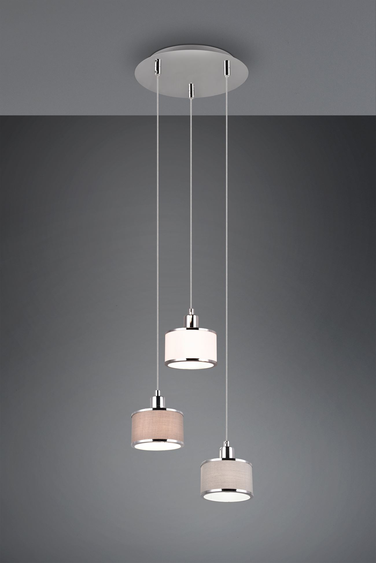 Κρεμαστό Φωτιστικό Ροζέτα KAPRUN Trio Lighting 3x E14 Νίκελ με Λευκό-Γκρι-Καφέ Αμπαζουρ – 311630306