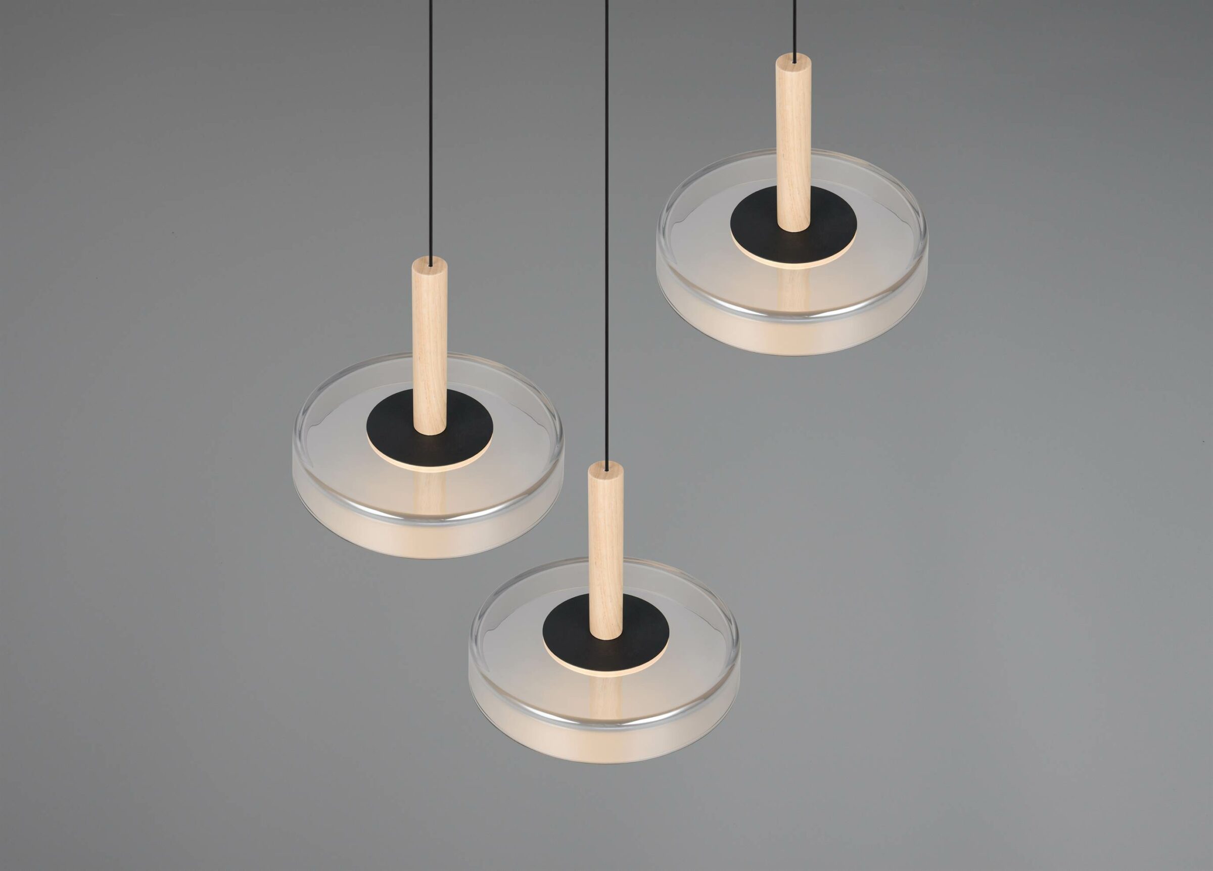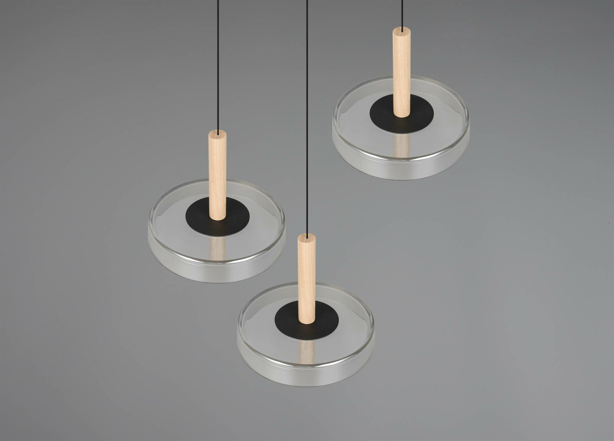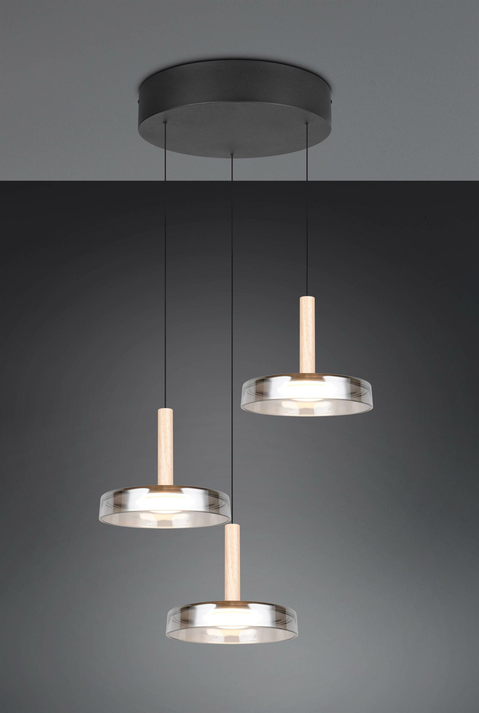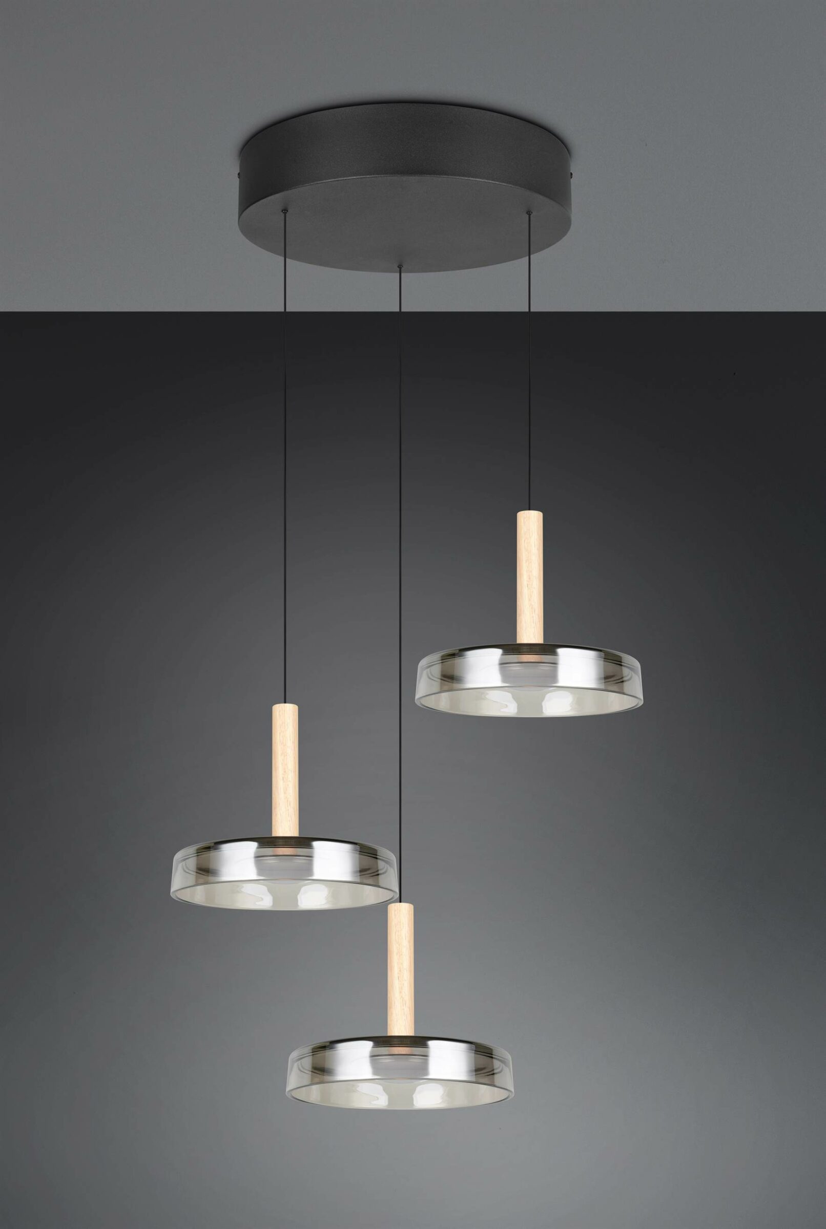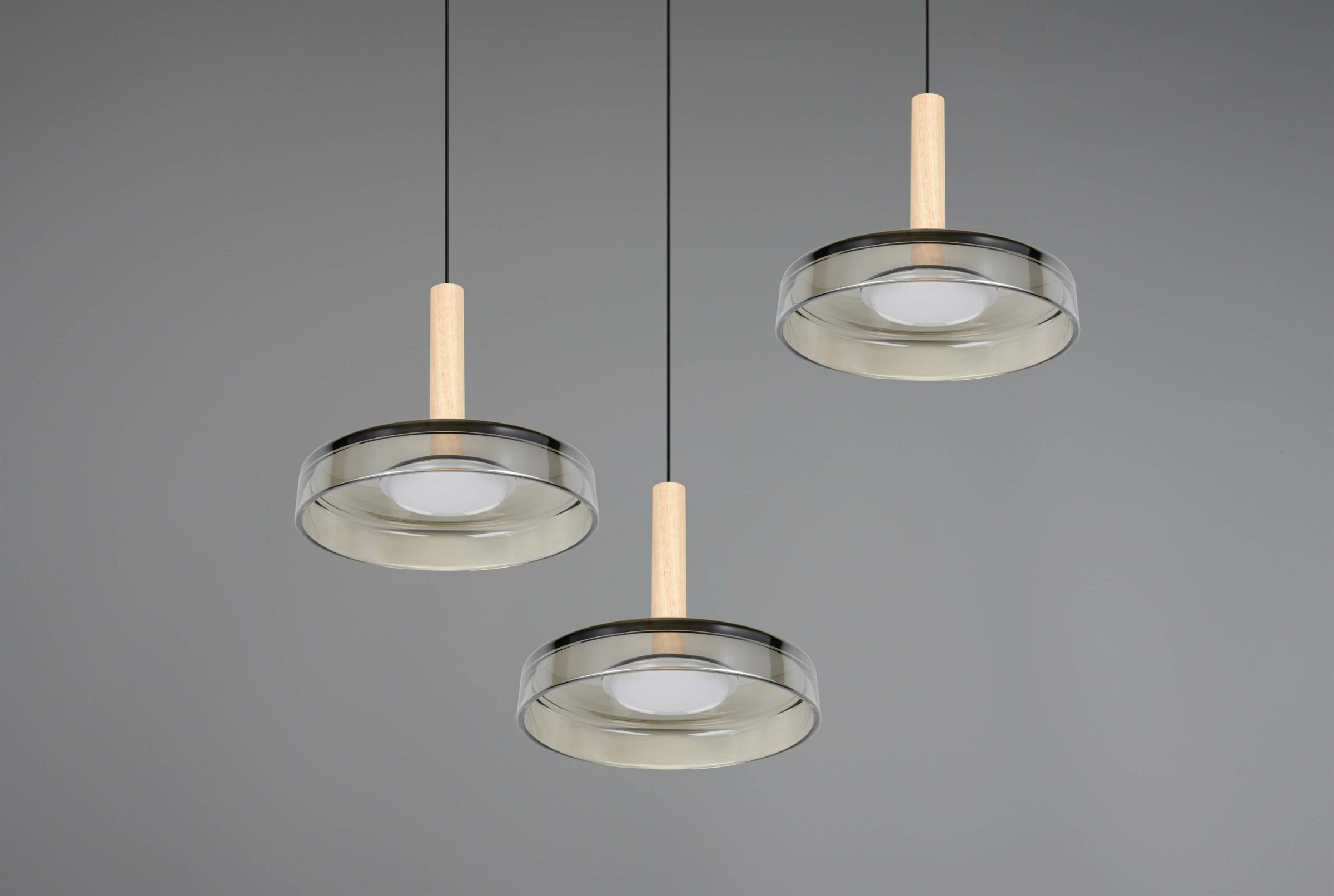 Κρεμαστό Φωτιστικό Ροζέτα με 3 Σποτ Ξύλο+Φιμέ Γυαλί CELESTE LED 22.5W 2250lm Step Dimmable 3000Κ Trio Lighting – 354930332
