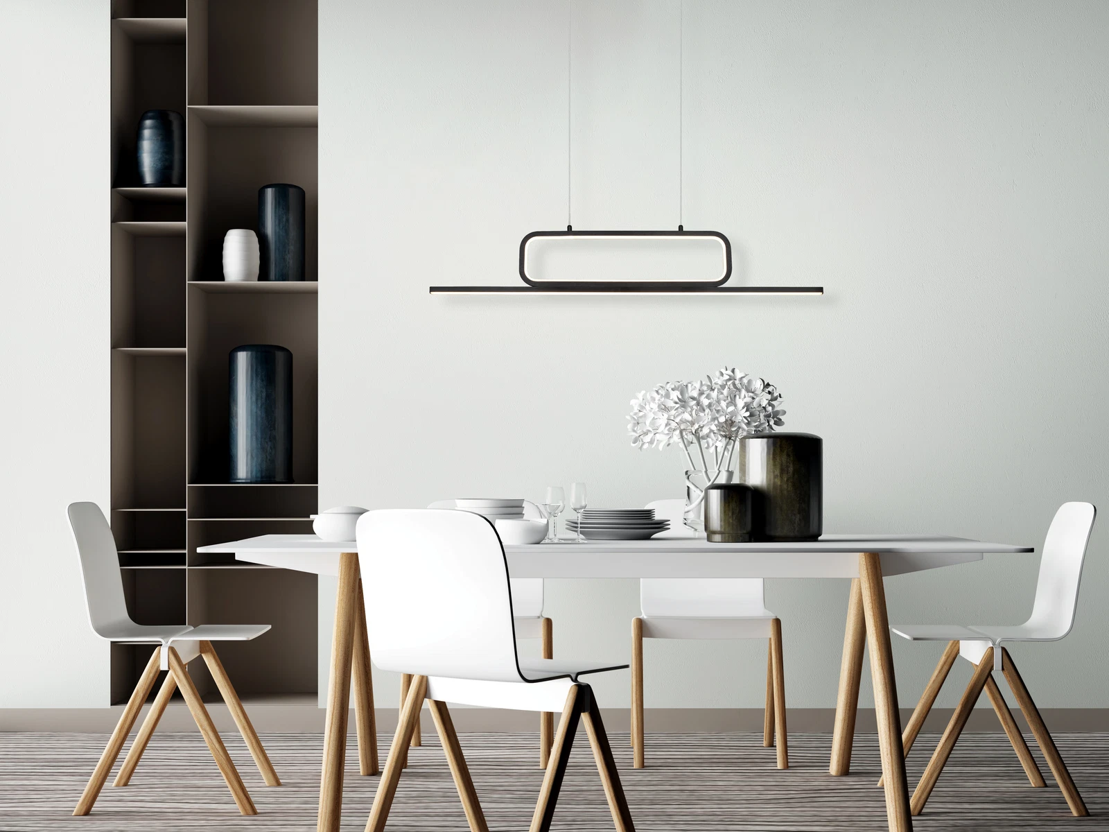 Το μαύρο ματ μεταλλικό σώμα και η γραμμική σχεδίαση προσδίδουν στο φωτιστικό έναν σύγχρονο χαρακτήρα που ταιριάζει άψογα με minimal, industrial ή μοντέρνα διακόσμηση. Το ύψος ανάρτησης μπορεί να ρυθμιστεί κατά την εγκατάσταση, επιτρέποντας την προσαρμογή του φωτιστικού ανάλογα με τον χώρο και το ύψος της οροφής.