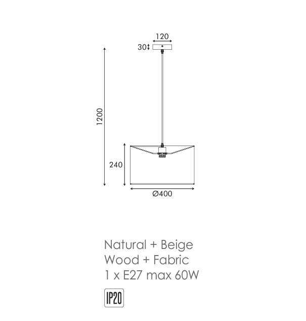 - Τύπος Λαμπτήρα: 1 x E27 (δεν περιλαμβάνεται).