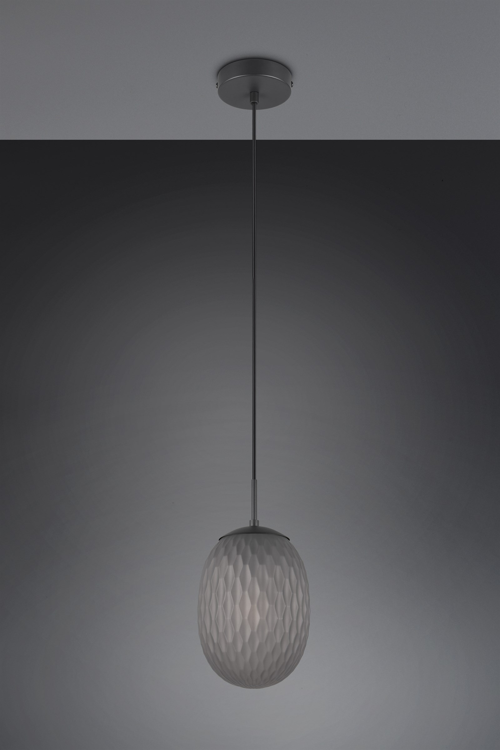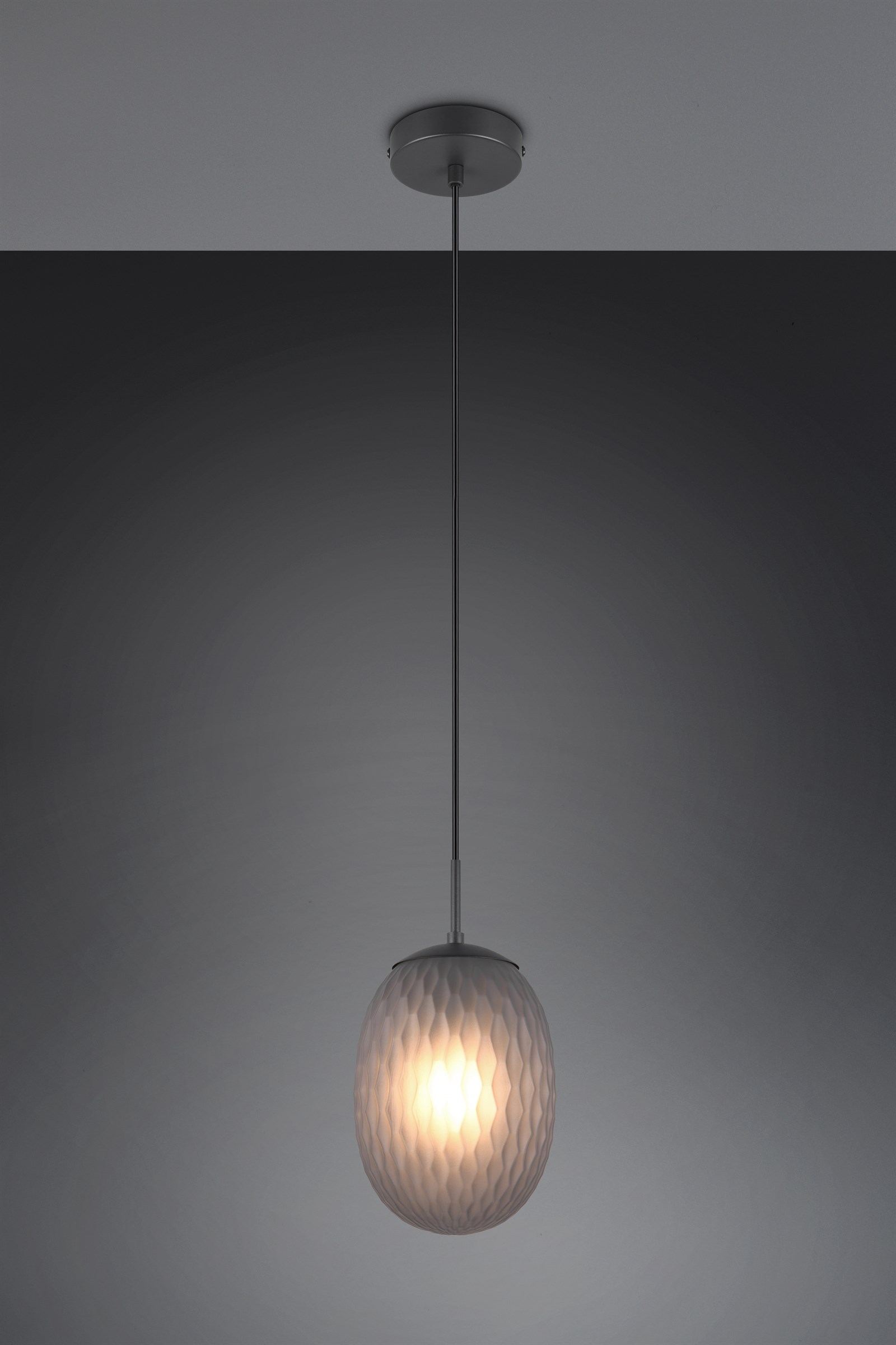 Κρεμαστό Μονόφωτο Μαύρο Ματ με Φιμέ Ανάγλυφο Γυαλί FACETTE 1xE27 Trio Lighting – 364200154