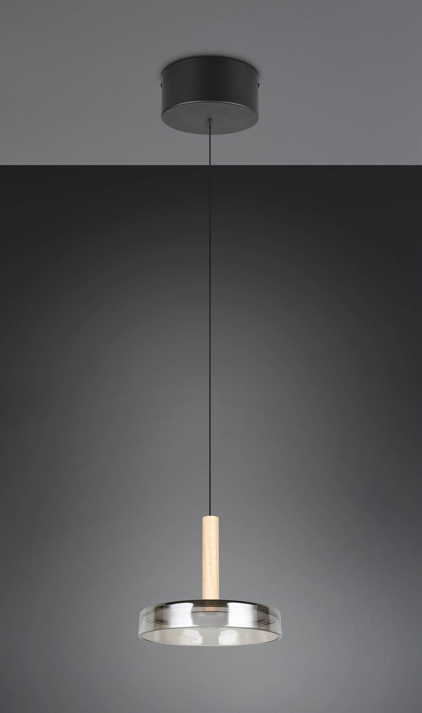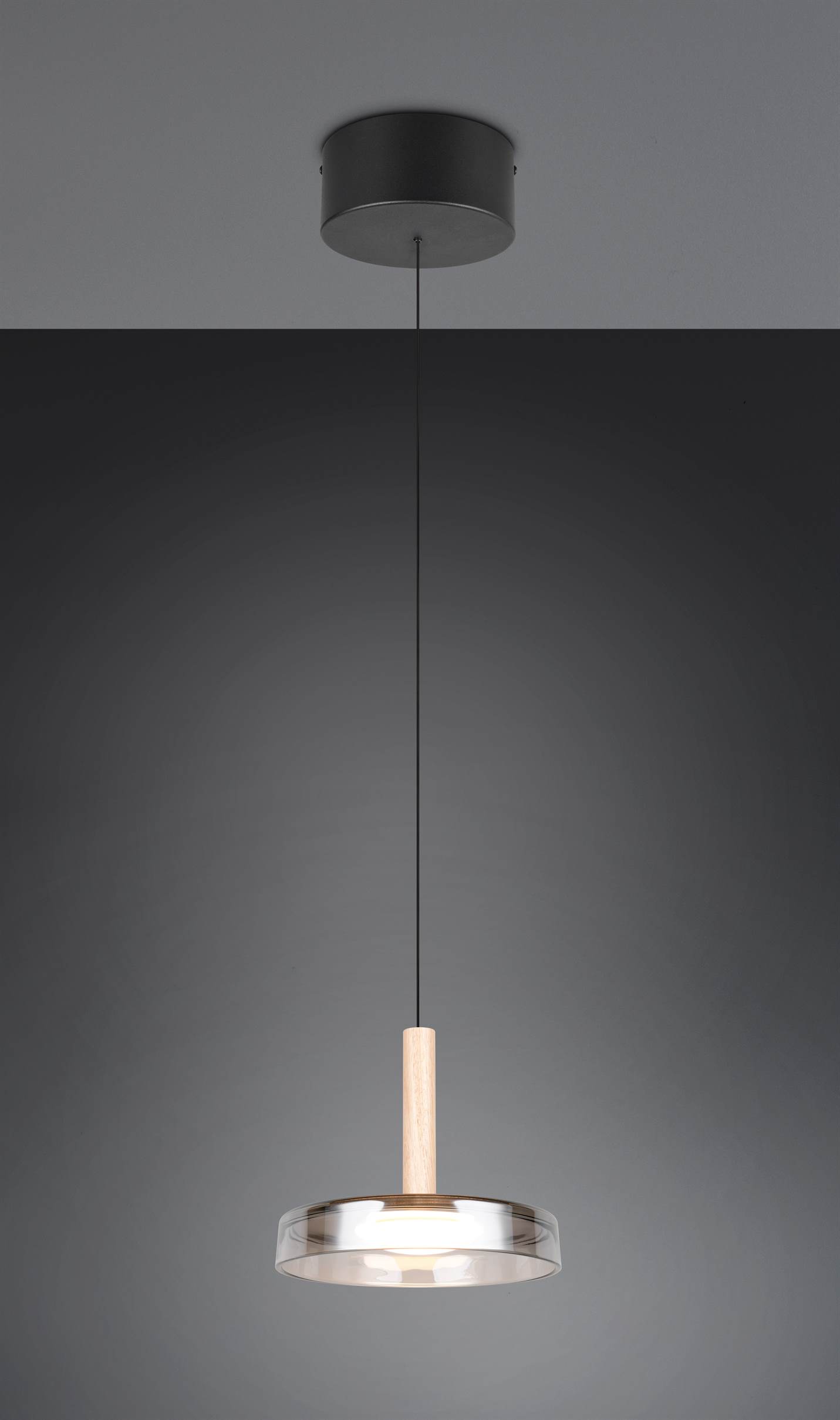 Κρεμαστό Μονόφωτο Ξύλο+Φιμέ Γυαλί CELESTE LED 10W 1100lm Step Dimmable 3000Κ Trio Lighting – 354910132