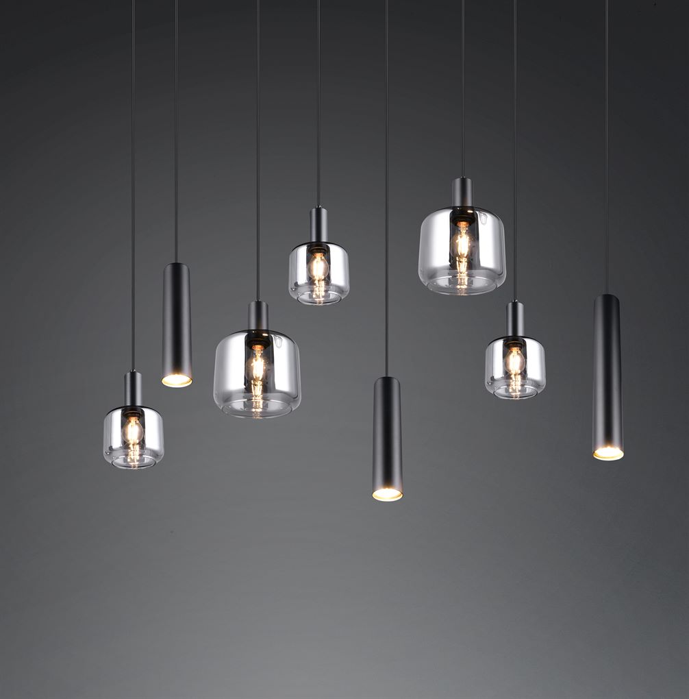 Κρεμαστό Πολύφωτο Ράγα Μαύρο Ματ & Γυαλί MATARO 2xE27 3xE14 3xGU10 Trio Lighting – 364100832