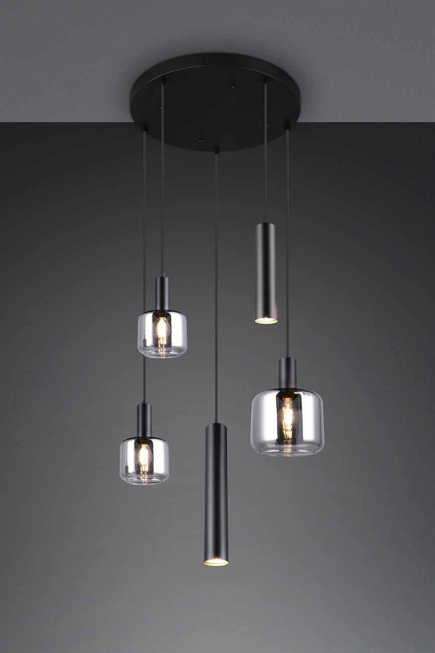 Κρεμαστό Πολύφωτο Ροζέτα Μαύρο Ματ & Γυαλί MATARO 1xE27 2xE14 2xGU10 Trio Lighting – 364130532