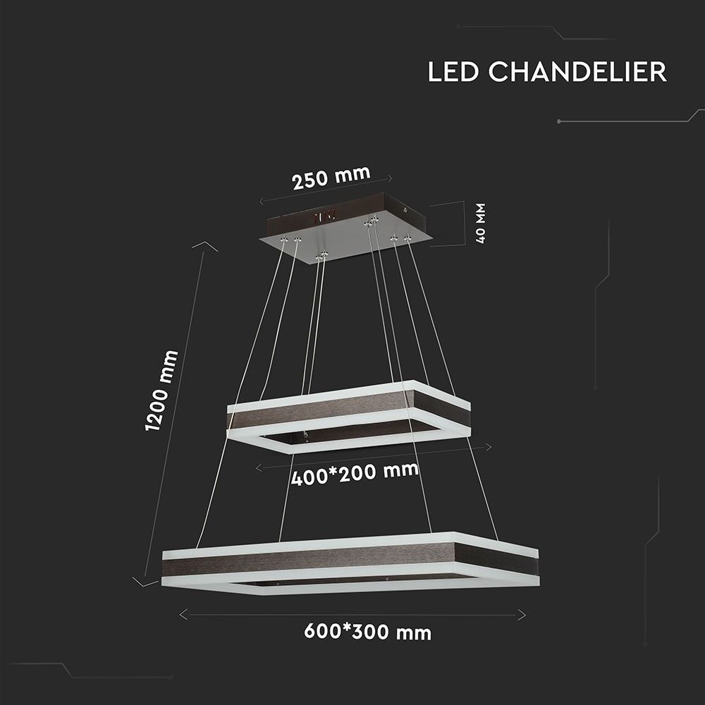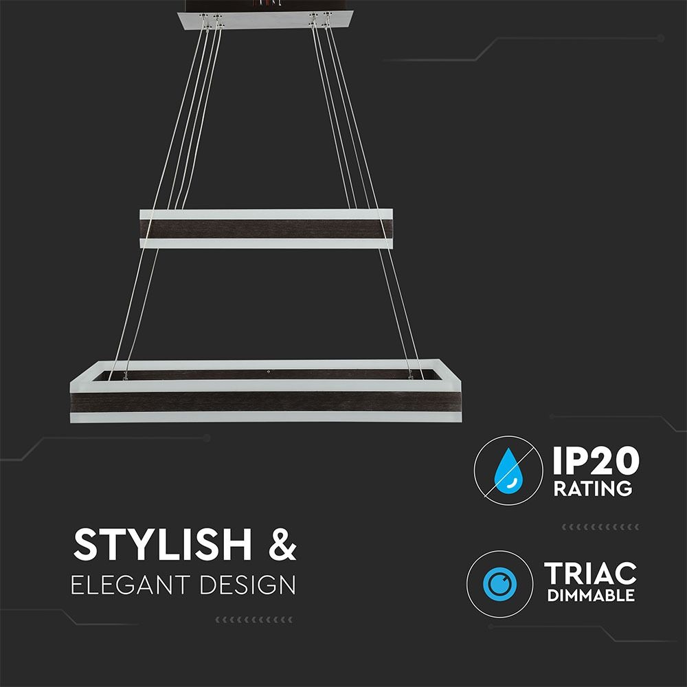 Κρεμαστός Πολυέλαιος LED Οροφής Ορθογώνιος Δύο Δακτύλιοι Καφέ 113W Dimmable V-TAC 6300lm Θερμό Λευκό 3000K – 213988