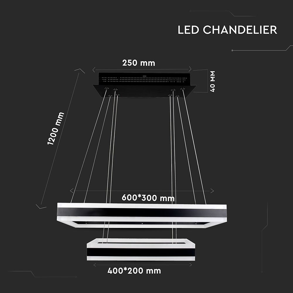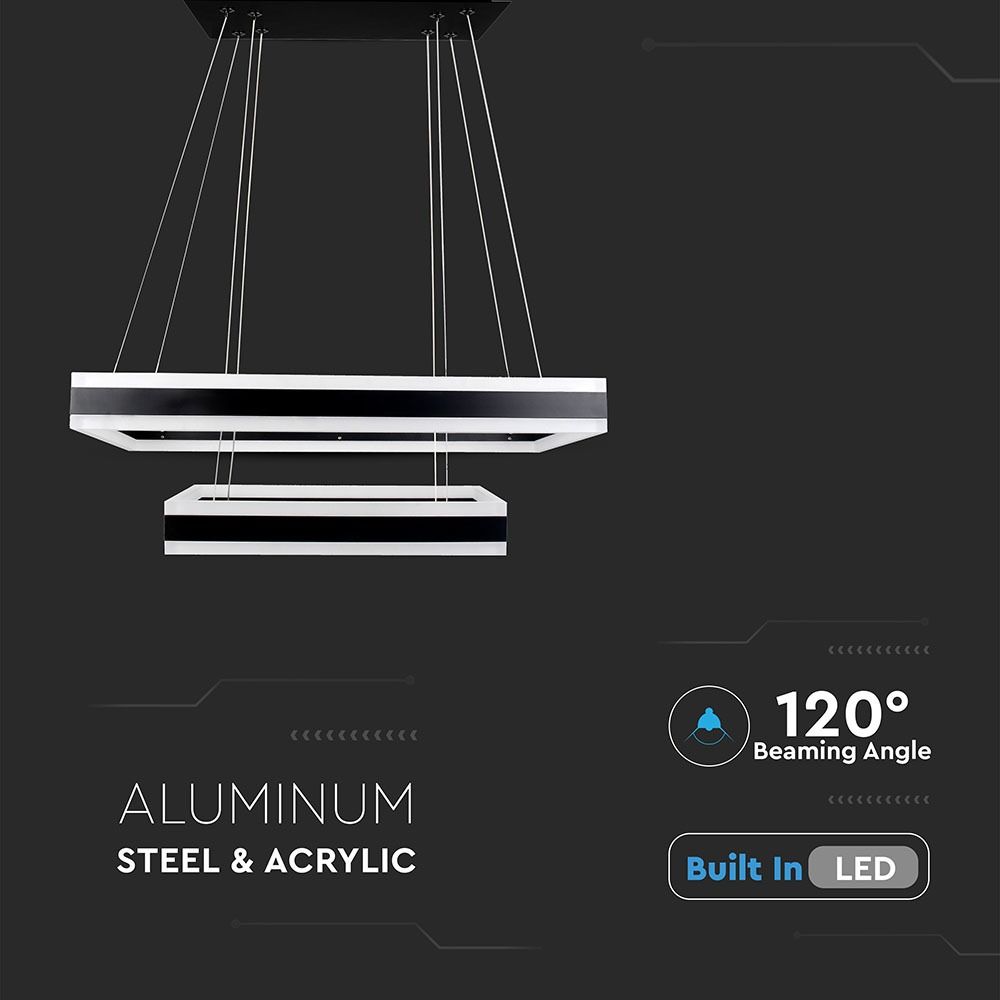 Κρεμαστός Πολυέλαιος LED Οροφής Ορθογώνιος Δύο Δακτύλιοι Μαύροι 113W Dimmable V-TAC 6300lm Θερμό Λευκό 3000K – 213987