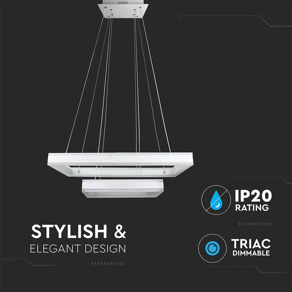 Κρεμαστός Πολυέλαιος LED Οροφής Ορθογώνιος Δύο Δακτύλιοι 113W Dimmable V-TAC 120° 6300lm Λευκό Θερμό Λευκό 3000K – 213986