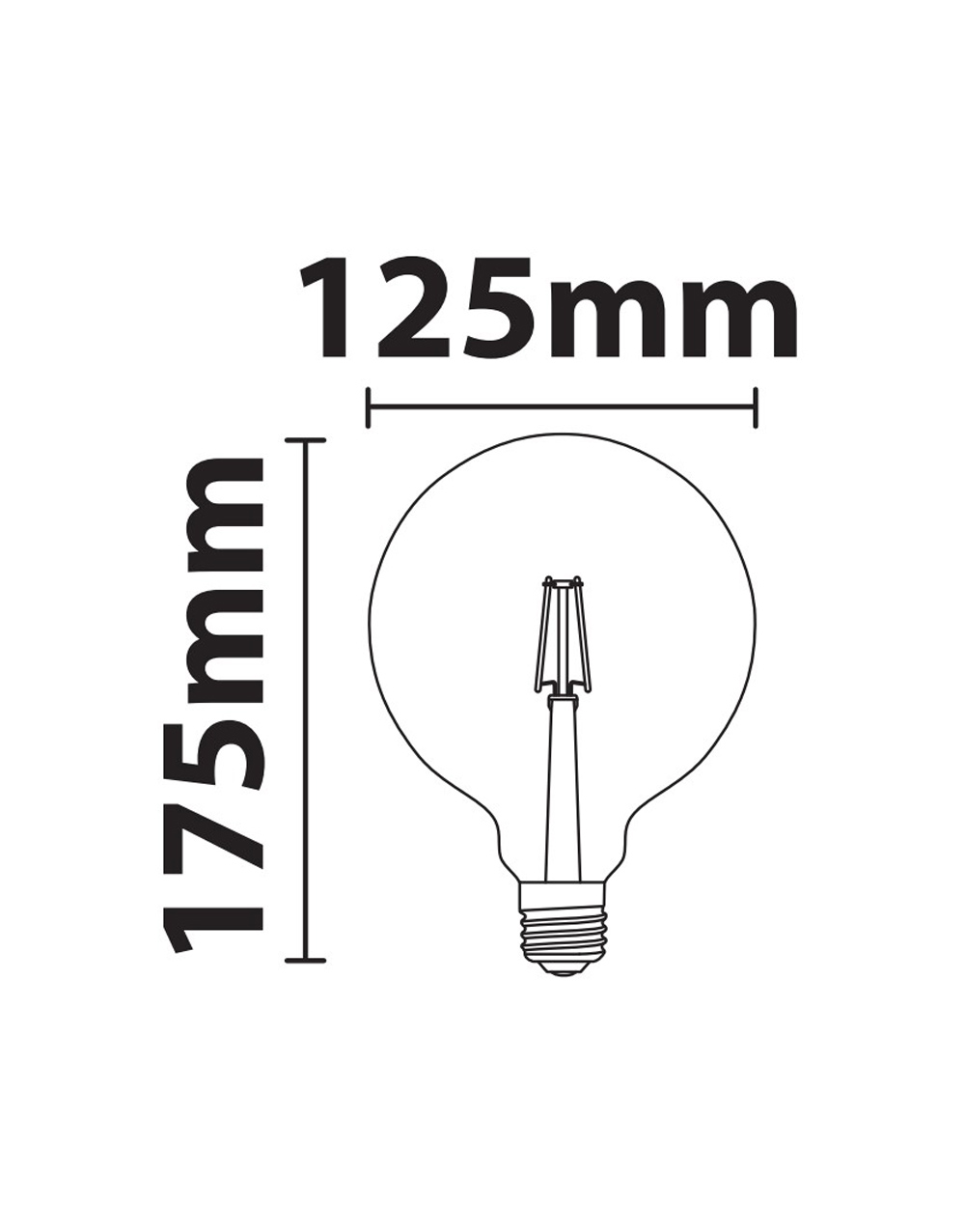 Λαμπτήρας LED Cross Filament (με ρυθμιζόμενη ένταση-dimmer triac) G125 12W με ντουι E27, φωτεινότητα 1500lm και θερμοκρασία χρώματος 2700Κ. Η τάση λειτουργίας της λάμπας είναι στα 220-240V & συχνότητα 50/60Hz.Η γωνία δέσμης φωτός είναι 360 μοίρες και στεγανοποίση IP20. Eγγύηση 2 έτη από την Universe.