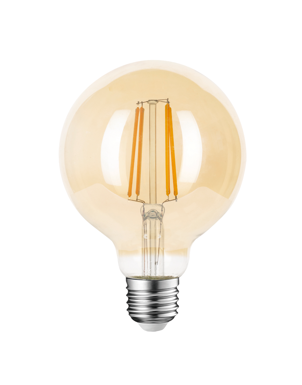Λαμπτήρας LED Cross Filament (με ρυθμιζόμενη ένταση-dimmer triac) G95 7W με ντουι E27, φωτεινότητα 806lm και θερμοκρασία χρώματος 2200Κ. Η τάση λειτουργίας της λάμπας είναι στα 220-240V & συχνότητα 50/60Hz.Η γωνία δέσμης φωτός είναι 360 μοίρες και στεγανοποίση IP20. Eγγύηση 2 έτη από την Universe.