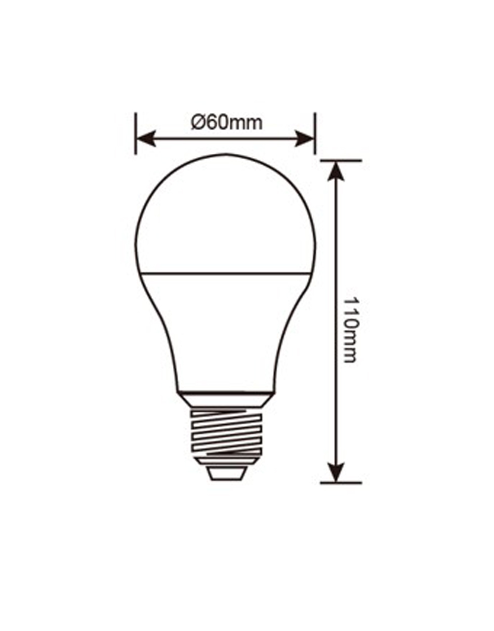 Λαμπτήρας LED Α60 12W με ντουι E27, φωτεινότητα 1500lm και χρωματική απόδοση 3000Κ. Η τάση λειτουργίας της λάμπας είναι στα 220-240V & συχνότητα 50/60Hz.Η γωνία δέσμης φωτός είναι 240 μοίρες και στεγανοποίση IP20. Eγγύηση 2 έτη από την Universe..