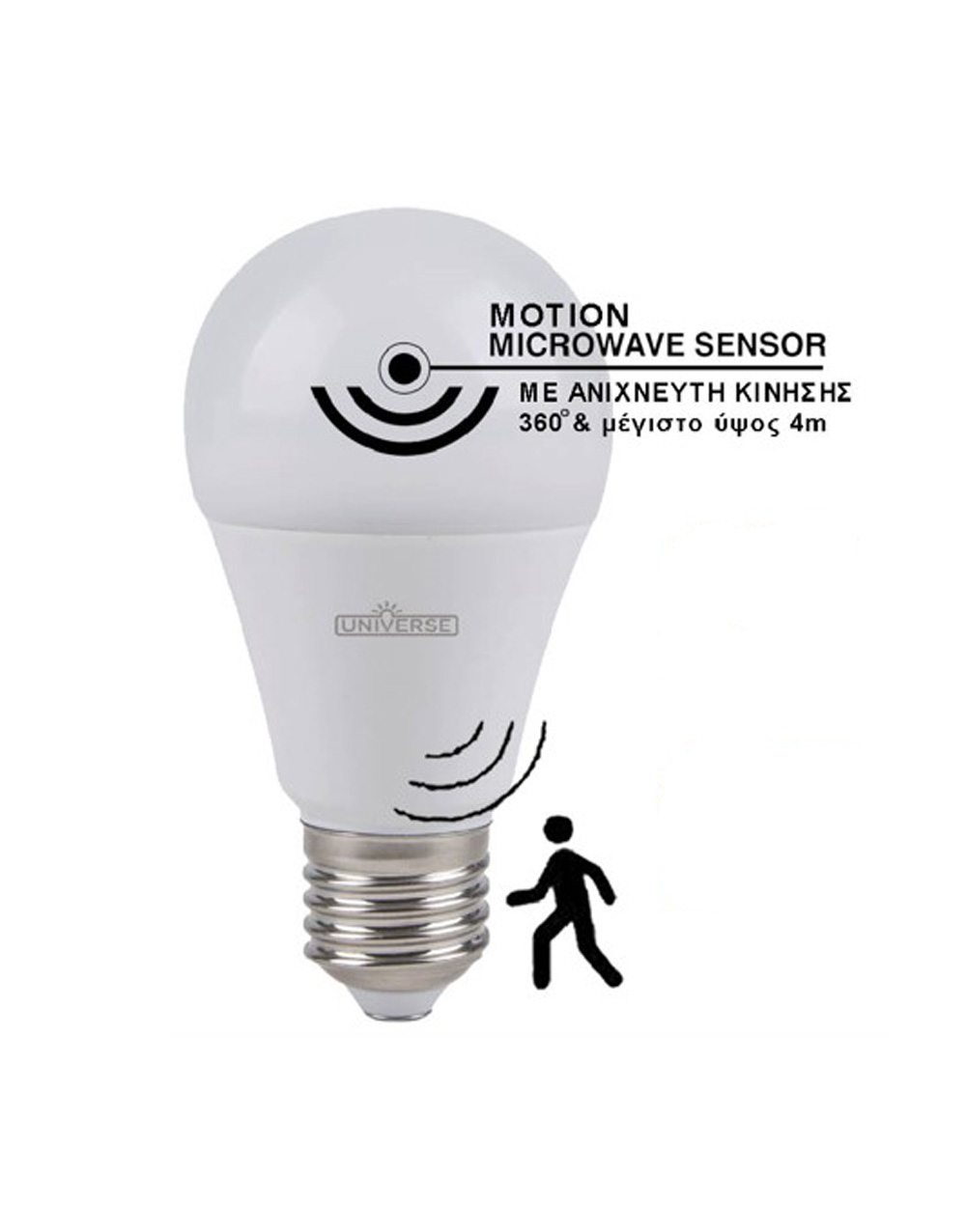 ΛΑΜΠΑ LED SMD A60 ΜΕ ΑΝΙΧΝΕΥΤΗ ΚΙΝΗΣΗΣ 7W E27 4000K 220-240V 680lm/F UNIVERSE – 1-U006651