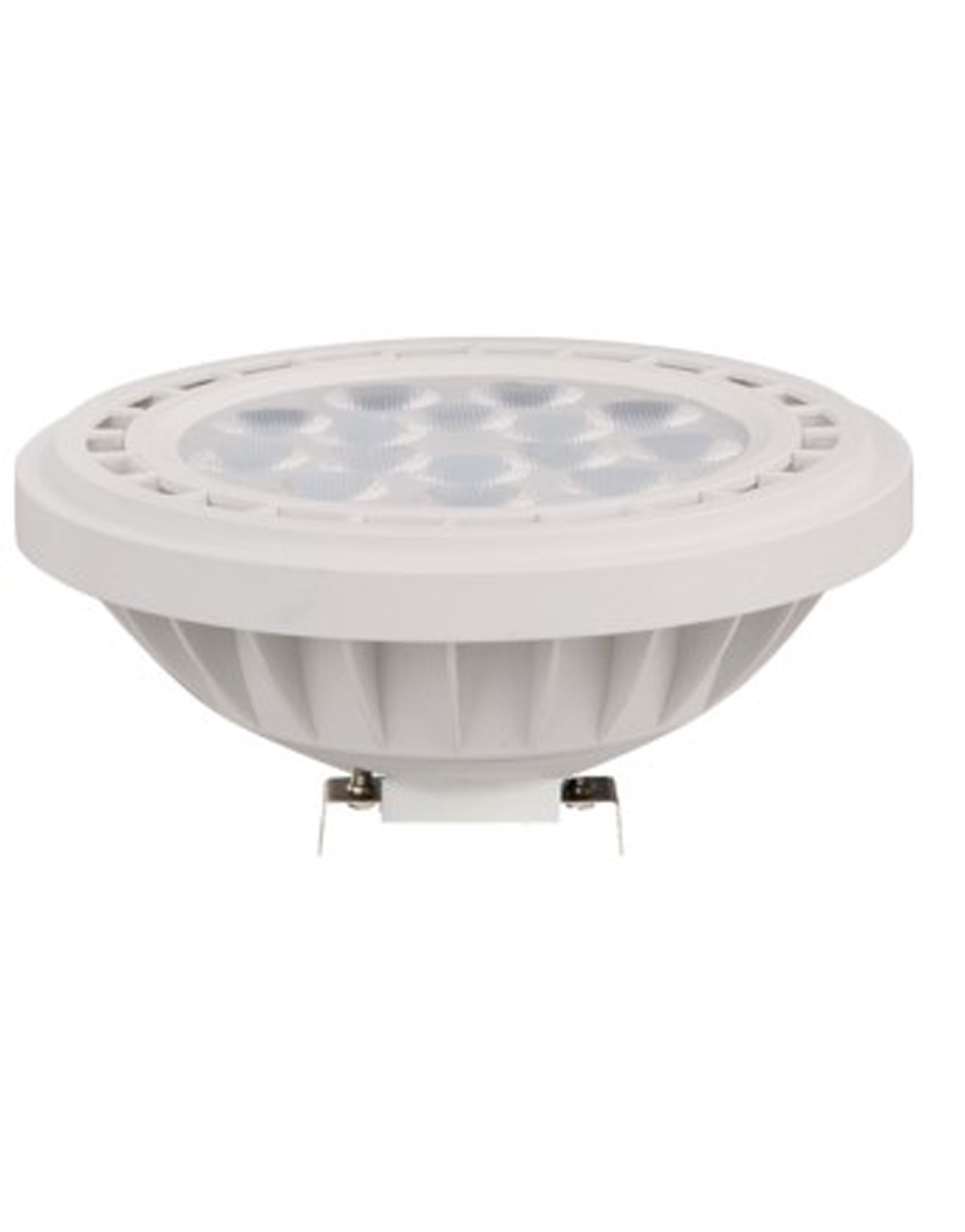 Λαμπτήρας LED AR111 12W με ντουι G53, φωτεινότητα 1050lm και θερμοκρασία χρώματος 3000K. Η τάση λειτουργίας της λάμπας είναι στα 12V AC/DC & συχνότητα 50/60Hz.Η γωνία δέσμης φωτός είναι 38 μοίρες και στεγανοποίση IP20. Eγγύηση 2 έτη από την Universe.