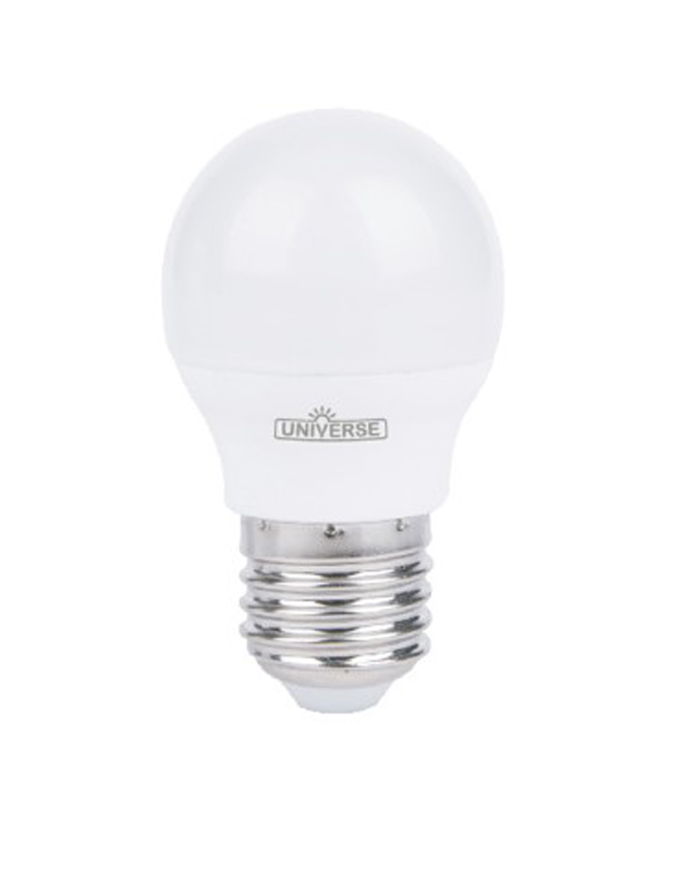 Λαμπτήρας LED G45 7W με ντουι E27, φωτεινότητα 600lm και θερμοκρασία χρώματος 4000Κ. Η τάση λειτουργίας της λάμπας είναι στα 220-240V & συχνότητα 50/60Hz.Η γωνία δέσμης φωτός είναι 240 μοίρες και στεγανοποίση IP20. Eγγύηση 2 έτη από την Universe.