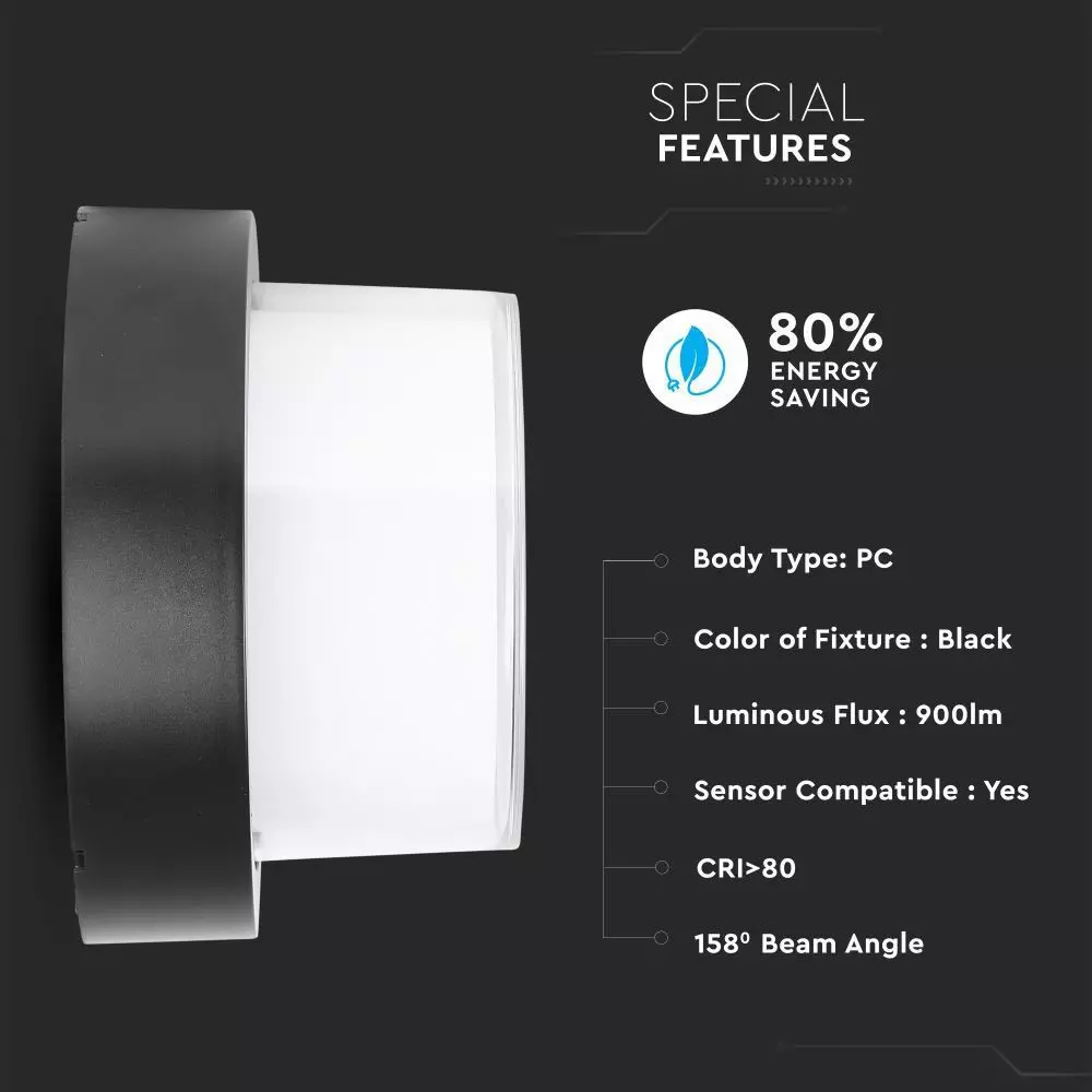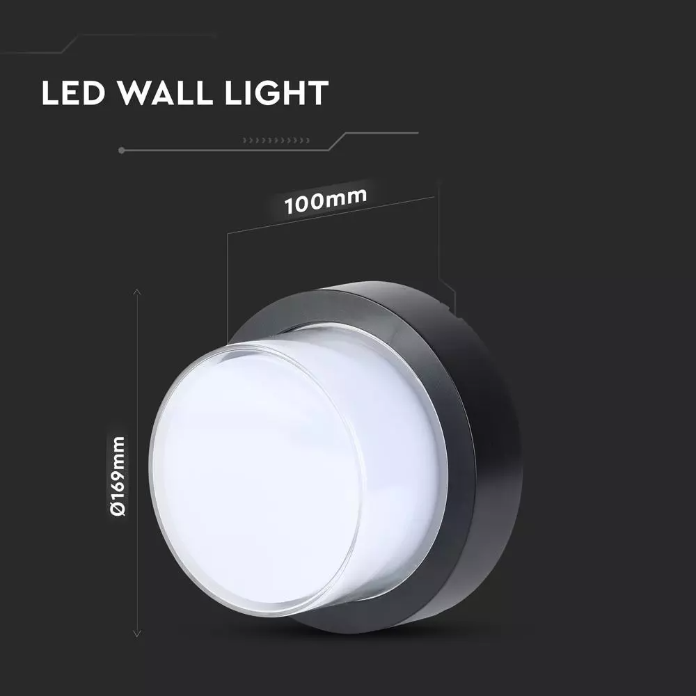 LED αδιάβροχη απλίκα 12W IP65 3000K Θερμό λευκό Μαύρο σώμα στρογγυλή V-TAC – 8541