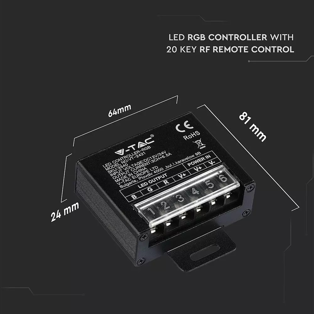 LED Controller με Τηλεχειριστήριο RF για Ταινίες RGB 240W/480W V-TAC – 3340