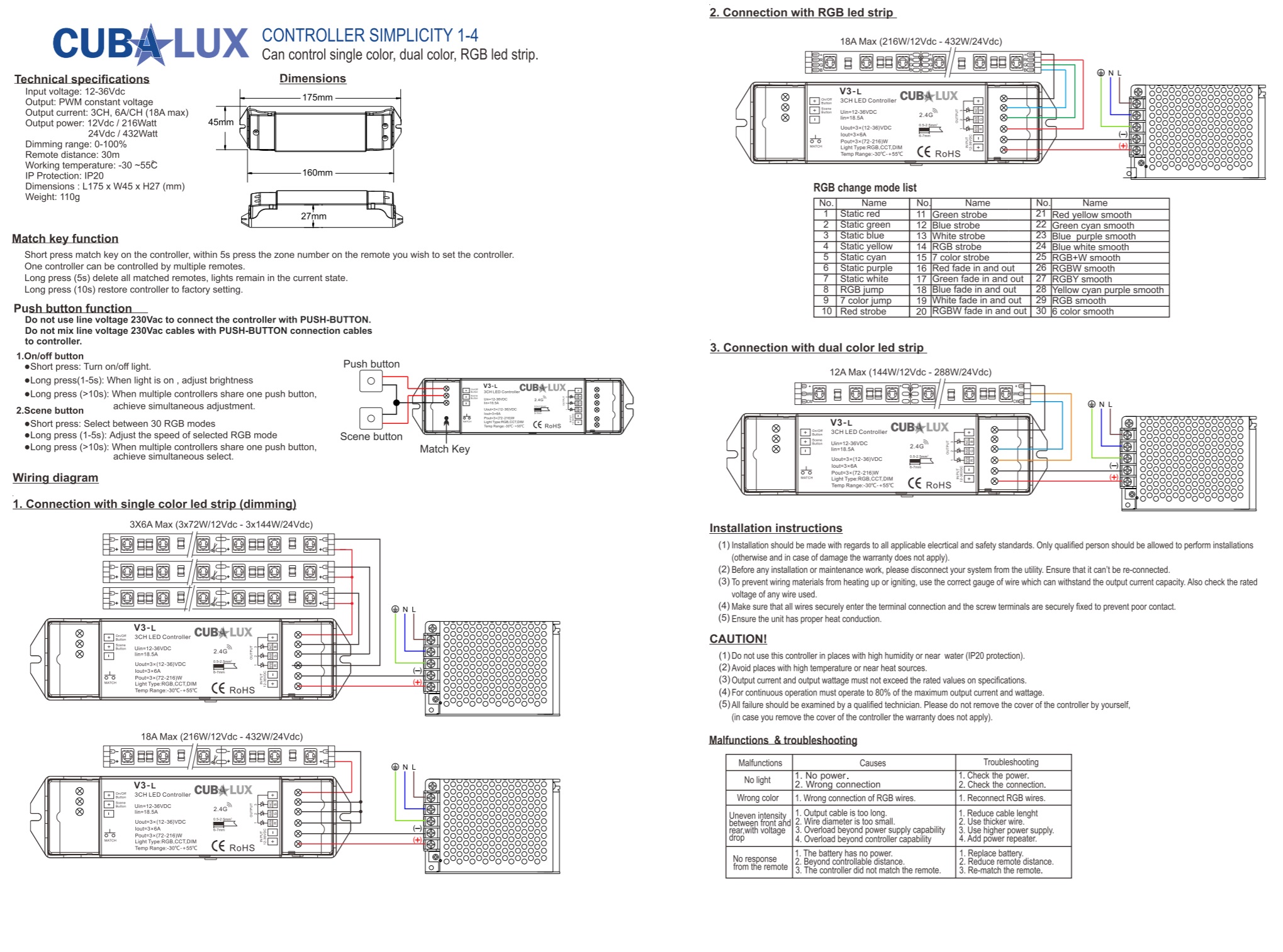 LED Controller Simplicity Μονόχρωμη & RGB ταινία LED 216W / 432 W CUBALUX