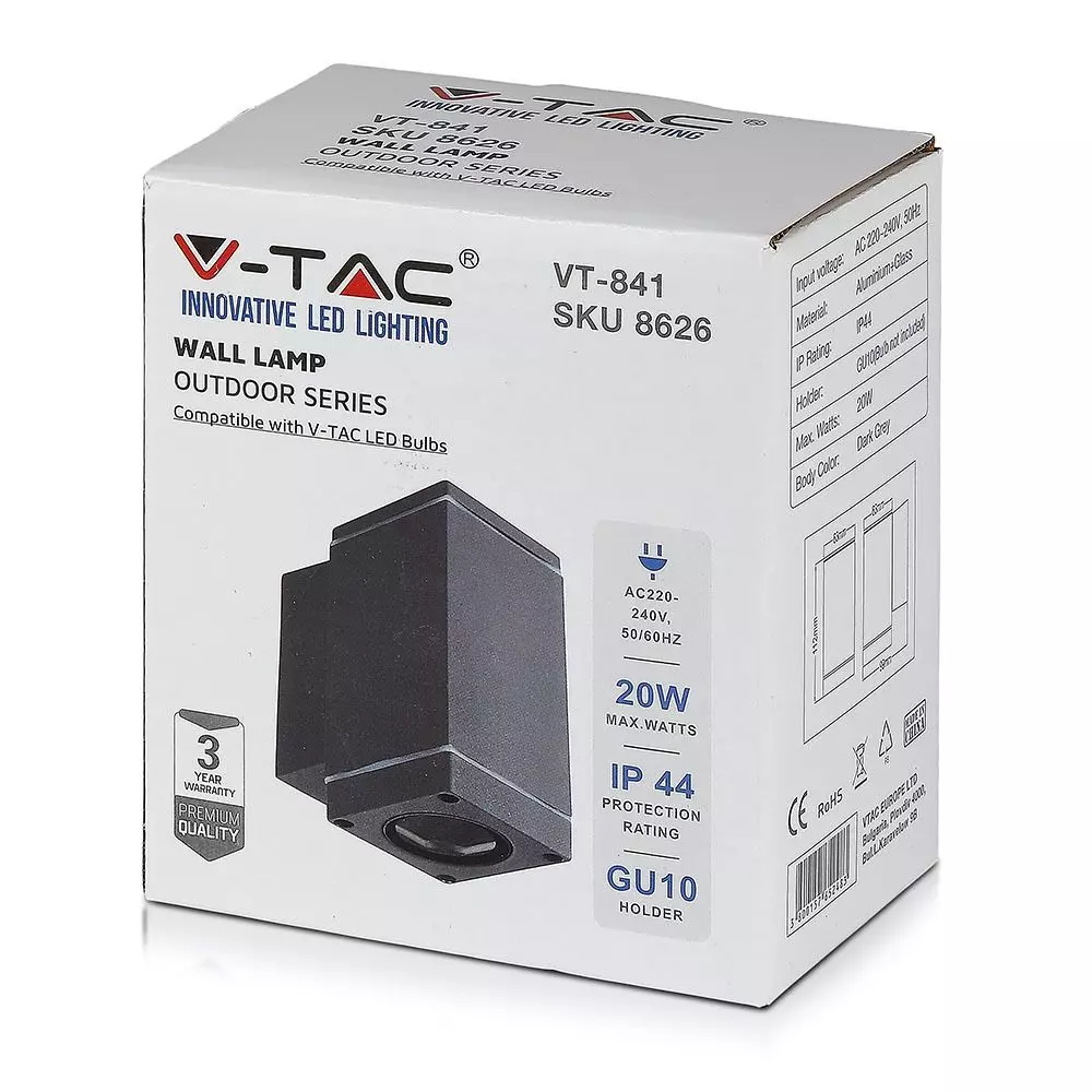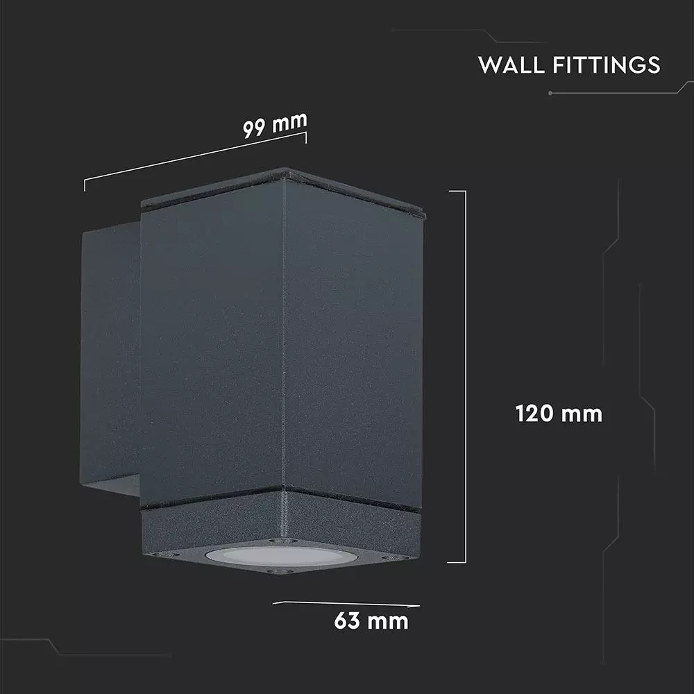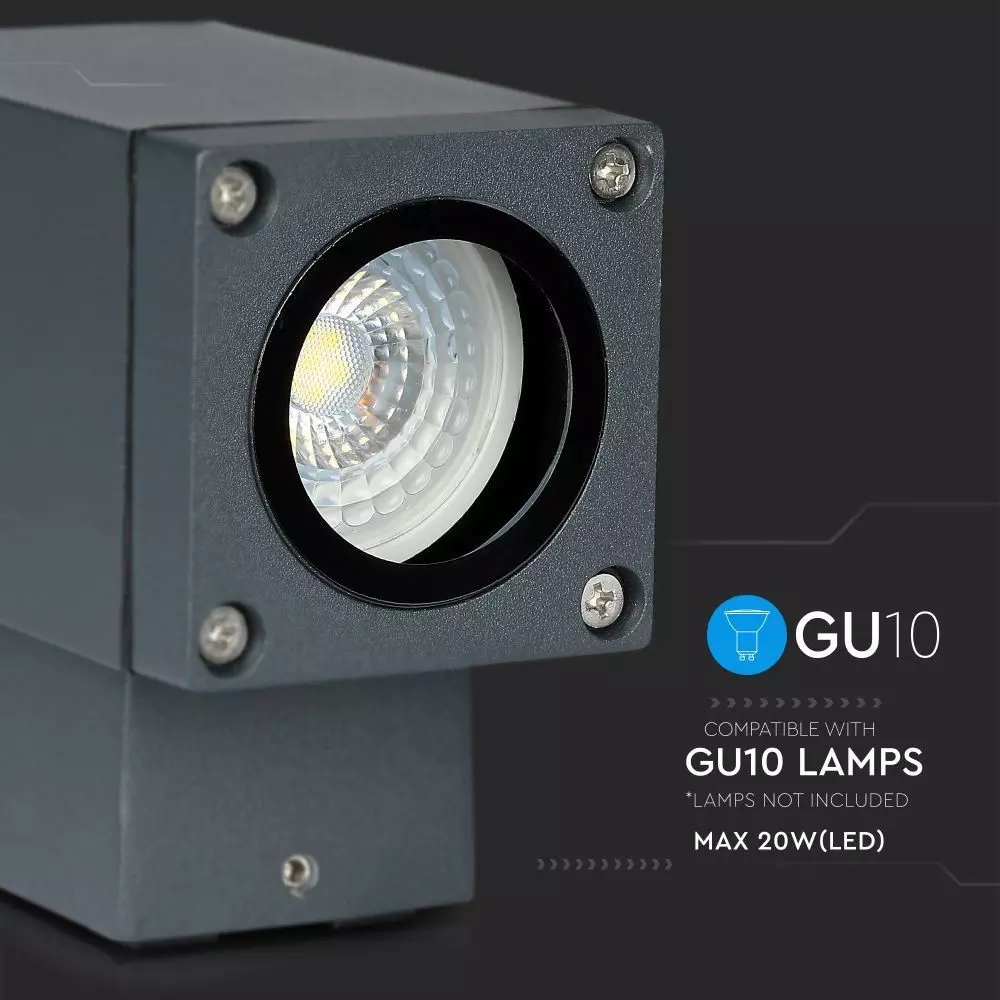 LED επιτοίχιο φωτιστικό GU10, τετράγωνο γκρί σώμα (Downlight) V-TAC – 8626