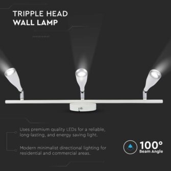 LED επιτοίχιο/οροφής φωτιστικό 13.5W 3000K θερμό λευκό με λευκό σώμα V-TAC – 218270