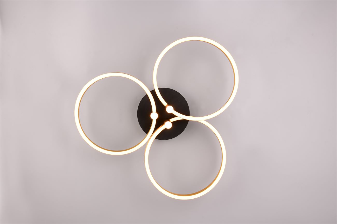 Το αποκορύφωμα του φωτιστικού οροφής CARUSO είναι ο μοναδικός σχεδιασμός του. Τρεις κομψά πλεγμένοι δακτύλιοι δημιουργούν μια δυναμική αλλά αρμονική εμφάνιση που τραβάει αμέσως τα βλέμματα. Ωστόσο, το φωτιστικό οροφής δεν είναι μόνο οπτικά ελκυστικό, αλλά και τεχνικά εντυπωσιακό. Η φωτεινότητα και το χρώμα του φωτός μπορούν να ρυθμιστούν σταδιακά χρησιμοποιώντας έναν συμβατικό διακόπτη φωτός, έτσι ώστε ο φωτισμός να μπορεί να προσαρμοστεί ευέλικτα στις ανάγκες και την επιθυμητή διάθεσή σας. Είτε έντονο φως για συγκεντρωμένη εργασία είτε χαμηλό φως για μια ζεστή ατμόσφαιρα – με το CARUSO έχετε πάντα τον πλήρη έλεγχο του φωτός. Ο συνδυασμός ματ μαύρου και χρυσού τόνου δίνει στο φως ένα μοντέρνο αλλά διαχρονικό στυλ που μπορεί να ενσωματωθεί αβίαστα σε διάφορες έννοιες επίπλων. Το φωτιστικό διαθέτει επίσης σύγχρονη τεχνολογία LED, η οποία χαρακτηρίζεται από υψηλή ποιότητα φωτισμού και ενεργειακή απόδοση. Σε σύγκριση με τις συμβατικές πηγές φωτός αλογόνου, μπορεί να εξοικονομηθεί έως και 80% του ενεργειακού κόστους. Οι πηγές φωτός LED έχουν επίσης μεγάλη διάρκεια ζωής, παράγουν λιγότερη θερμότητα και προστατεύουν το περιβάλλον.